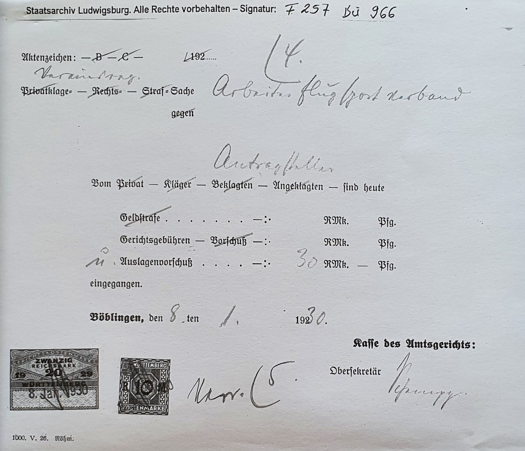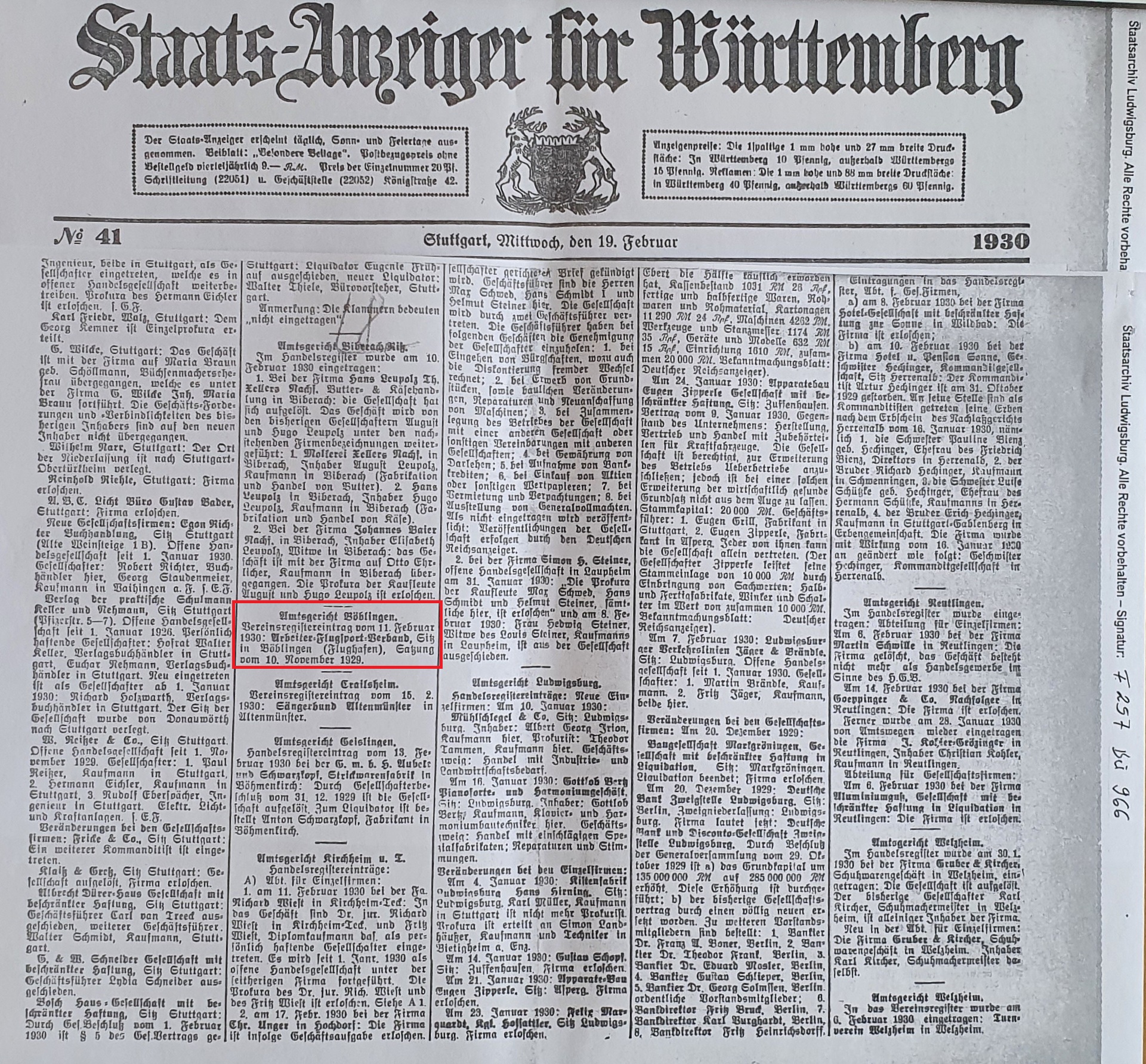 aus dem Hauptstaatsarchiv Ludwigsburg: Kurze Zusammenfassung der anschließend beigefügten Dokumente