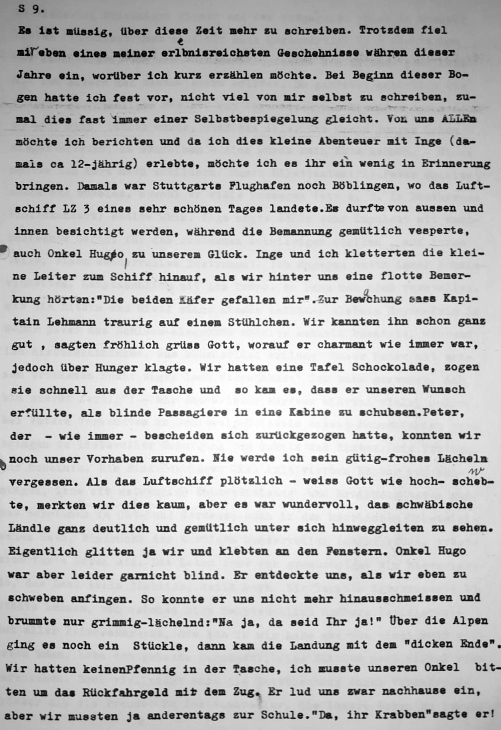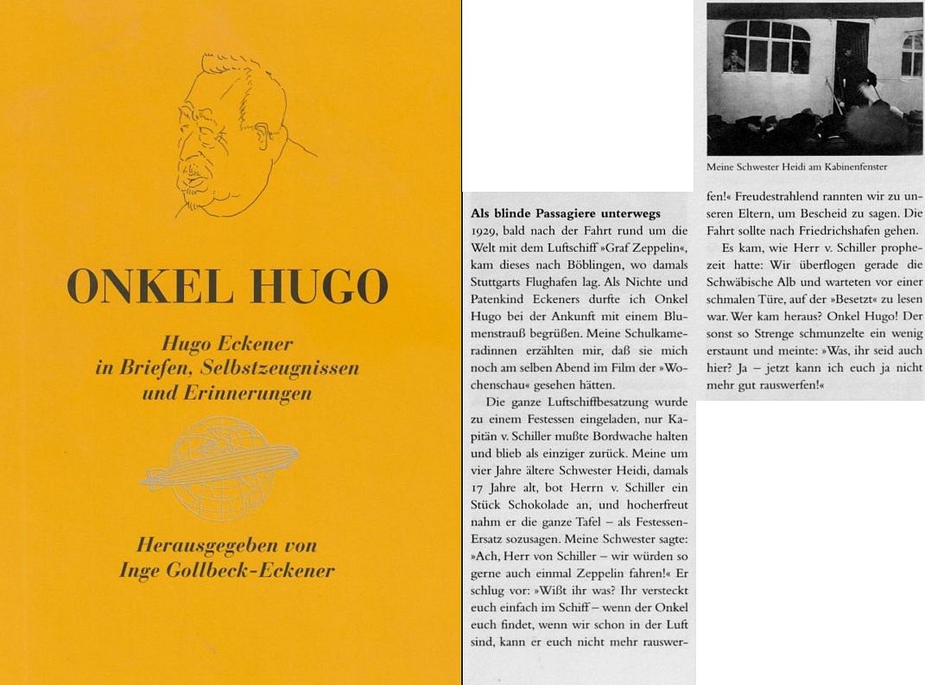 *) Inge und Heide, die Töchter von Alexander Eckener, einem Bruder von Hugo Eckener, kamen zur Begrüßung ihres Onkels aus Stuttgart, Johannisstraße 71 (Stuttgart)“, und durften an Bord des Zeppelins. Vor der Rückfahrt versteckten sie sich dort und landeten so in Friedrichshafen. (aufgeschrieben von Heidi Schüle – aus dem Familienarchiv von Christian Wolter) – Bemerkung: Luftschiff LZ 3 muß natürlich LZ 127 heißen
