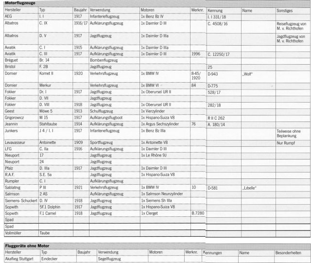 (vorläufige) Inventarliste des Deutschen Luftfahrtmuseums in Böblingen 1929-1935