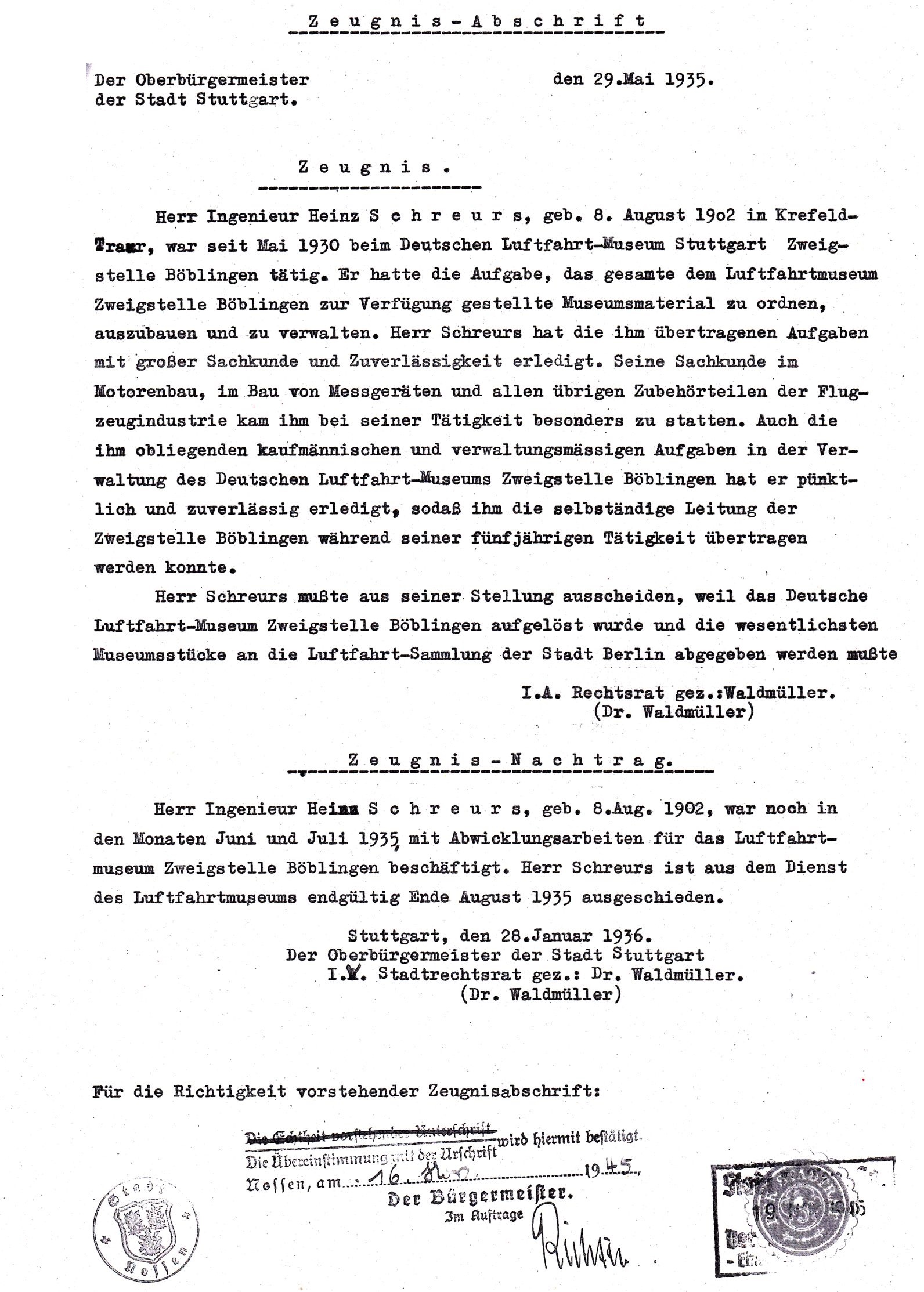 Ein interessantes Dokument zur Auflösung des Böblinger Museum das Zeugnis des Museumsleiters Heinz Schreuers: