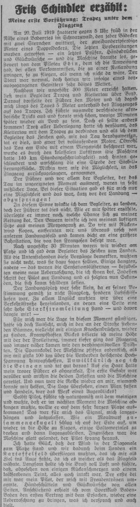 • 1930-10-17 – Badischer Beobachter „Die durch den tragischen Tod Fritz Schindler ihres Führers beraubte Schindlerflug G.m.b.H. in Freiburg i.Br. ist in Liquidation getreten.“