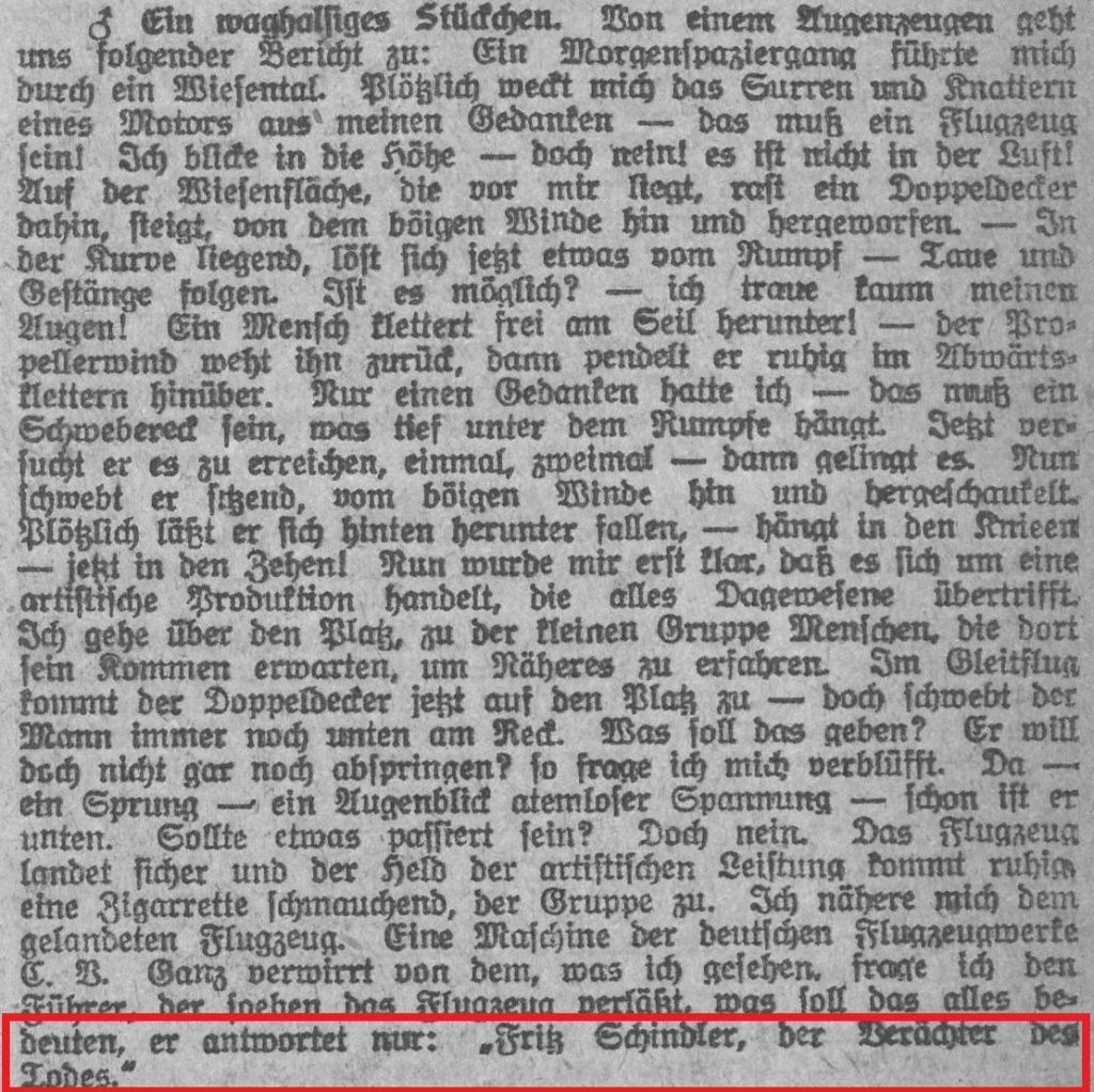 Diese Erwähnung deckt sich im Wesentlichen mit zwei späteren Artikeln, in denen er von der Anfangzseit seiner Flugakrobatik berichtete:
