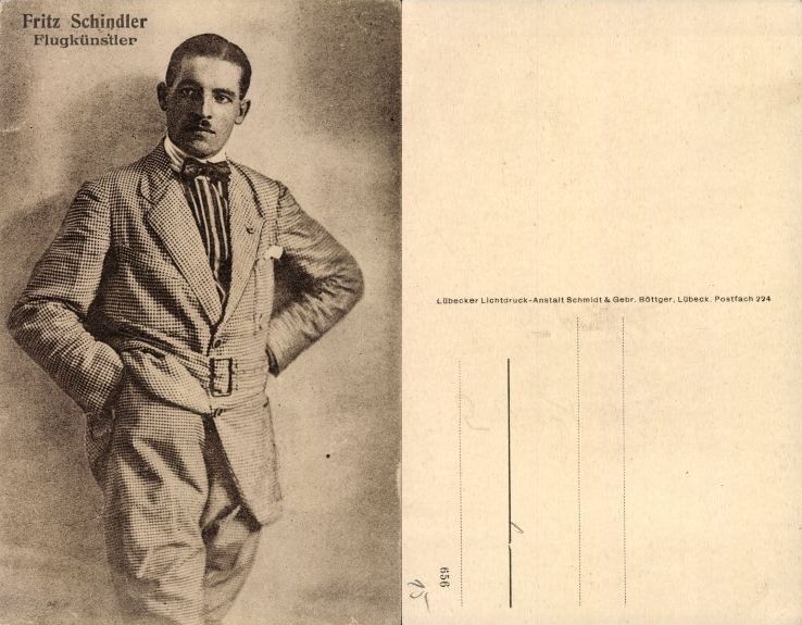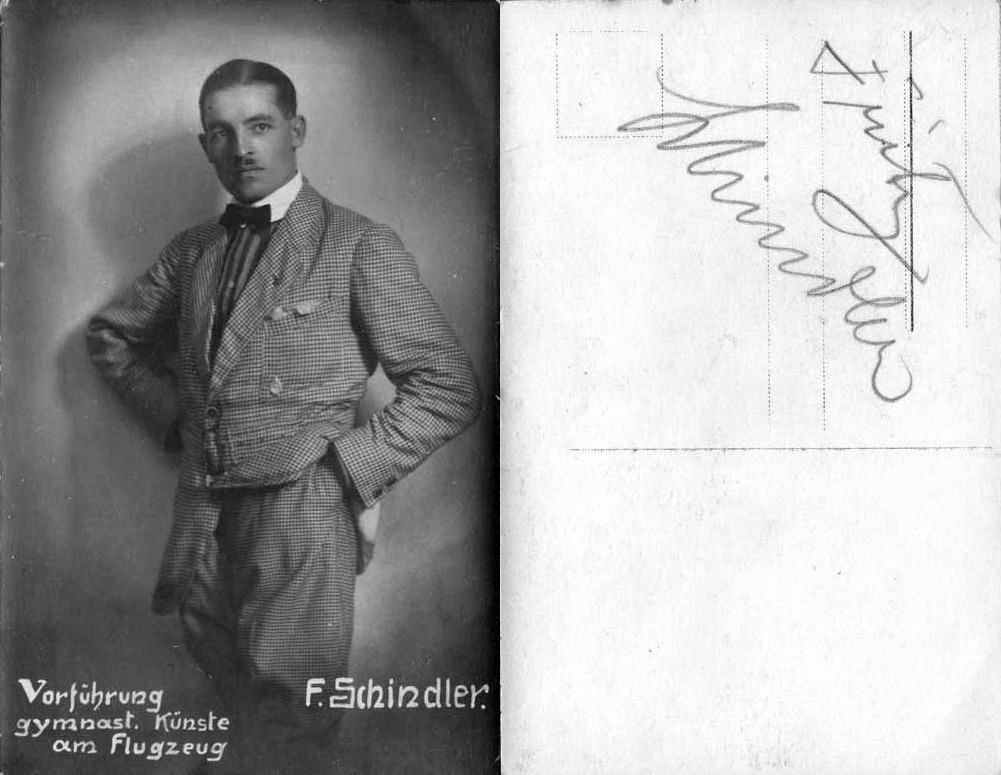 • Schindler hatte auch begonnen, in Freiburg eine Jungfliegergruppe aufzubauen. Auch beteiligte er sich am Ausschuss für Leibesübungen und Jugendpflege. Schindlers Tod brachte am 31. Oktober 1930 nicht nur die Auflösung seines Unternehmens, sondern auch in der Folgezeit ein generelles Verbot von Luftakrobatik im Reichsgebiet.