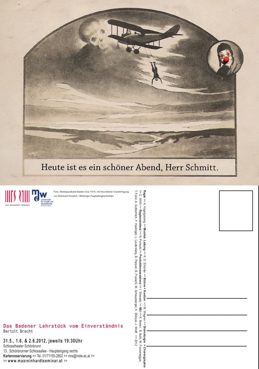 Noch 2012 fazinierte selbst das weltberühmte Max Reinhardt-Seminar, einer Ausbildungsstätte für angehende Schauspieler dieses Thema und fragte uns um Genehmigung, Schindlers Werbepostkarte verwenden zu dürfen: