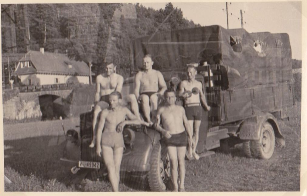 Nach den folgenden Fotos zu urteilen, waren die Attrappenbauer eine lustige Mannschaft.(Quelle Hermann Raiser)