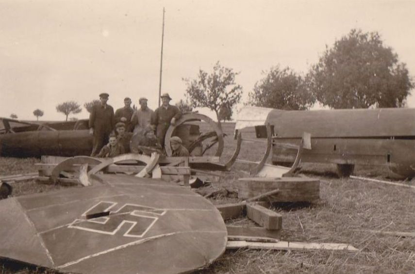 Im Fall von Mötzingen und auch anderen Flugplätzen setzte die Wehrmacht nach und nach auf erbeutete Flugzeuge aus tschechischen Beständen, Modell Praha E 39. „Die hatten aber keinen Motor mehr“, sagt Dengler. Auf dem nebenstehenden Bild ist dies zu erkennen: Der 9-Zylinder-Sternmotor fehlt, hinter den seitlichen Lufteinlässen herrscht Leere und der Propeller ist aus Holz.