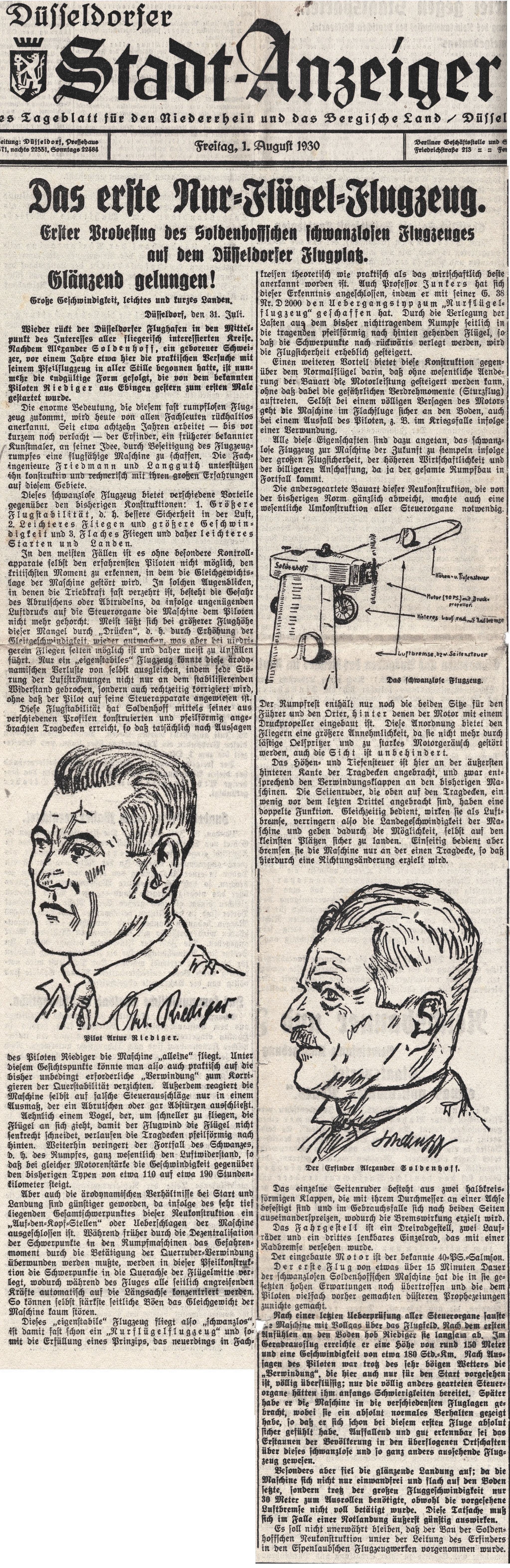 Am 25. Oktober 1929 fand in Tempelhof die erste öffentliche Vorführung schwanzloser Motorflugzeuge statt, an dem auch der Soldenhoff-Apparat teilnahm. Zurückgekehrt nach Düsseldorf setzten G.Espenlaub und sein Bruder Johannes die Flugerprobung fort. Sie erreichten Geschwindigkeiten über 160 km/h – und das mit nur 35 PS ! Die Flugeigenschaften waren als ausgesprochen gutmütig zu bezeichnen.