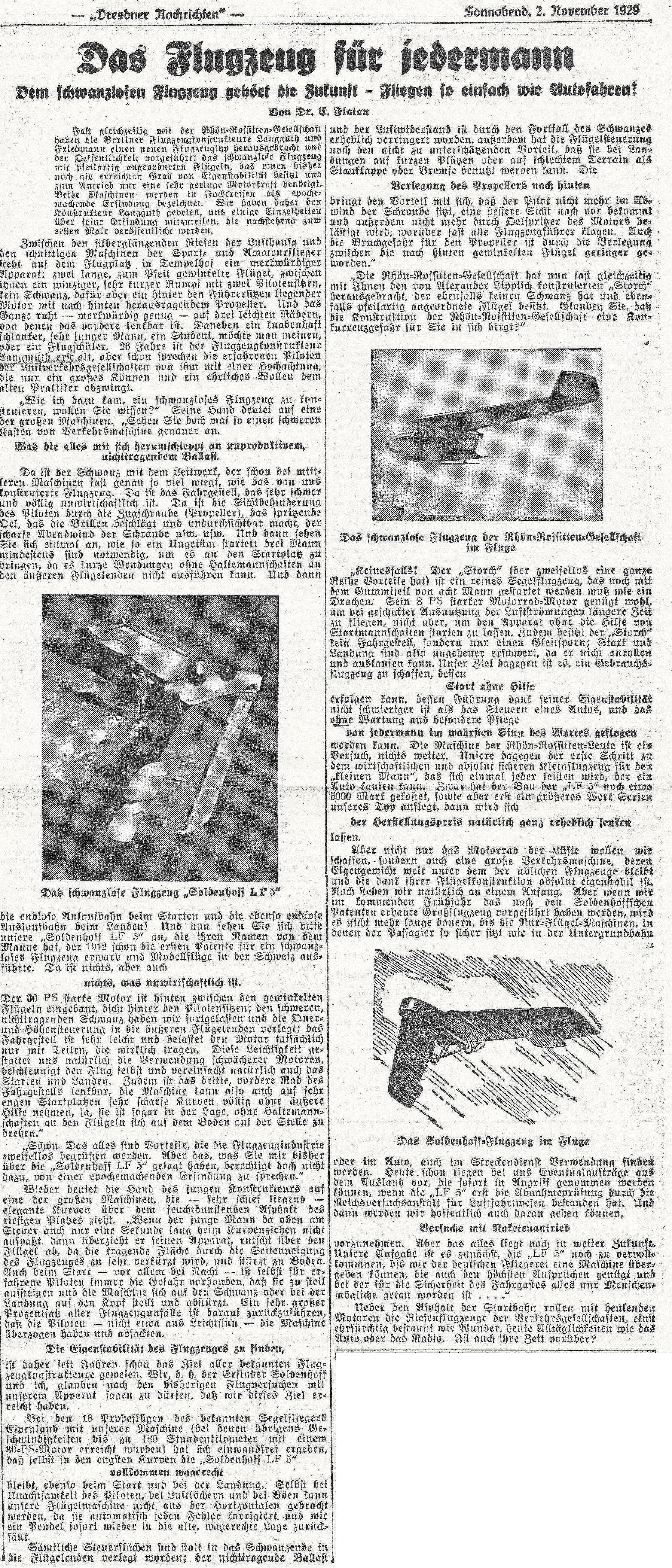A.Soldenhoff zog die Konsequenzen und siedelte noch 1927 nach Berlin um. In der AVA Göttingen ließ er Windkanalmessungen durchführen.