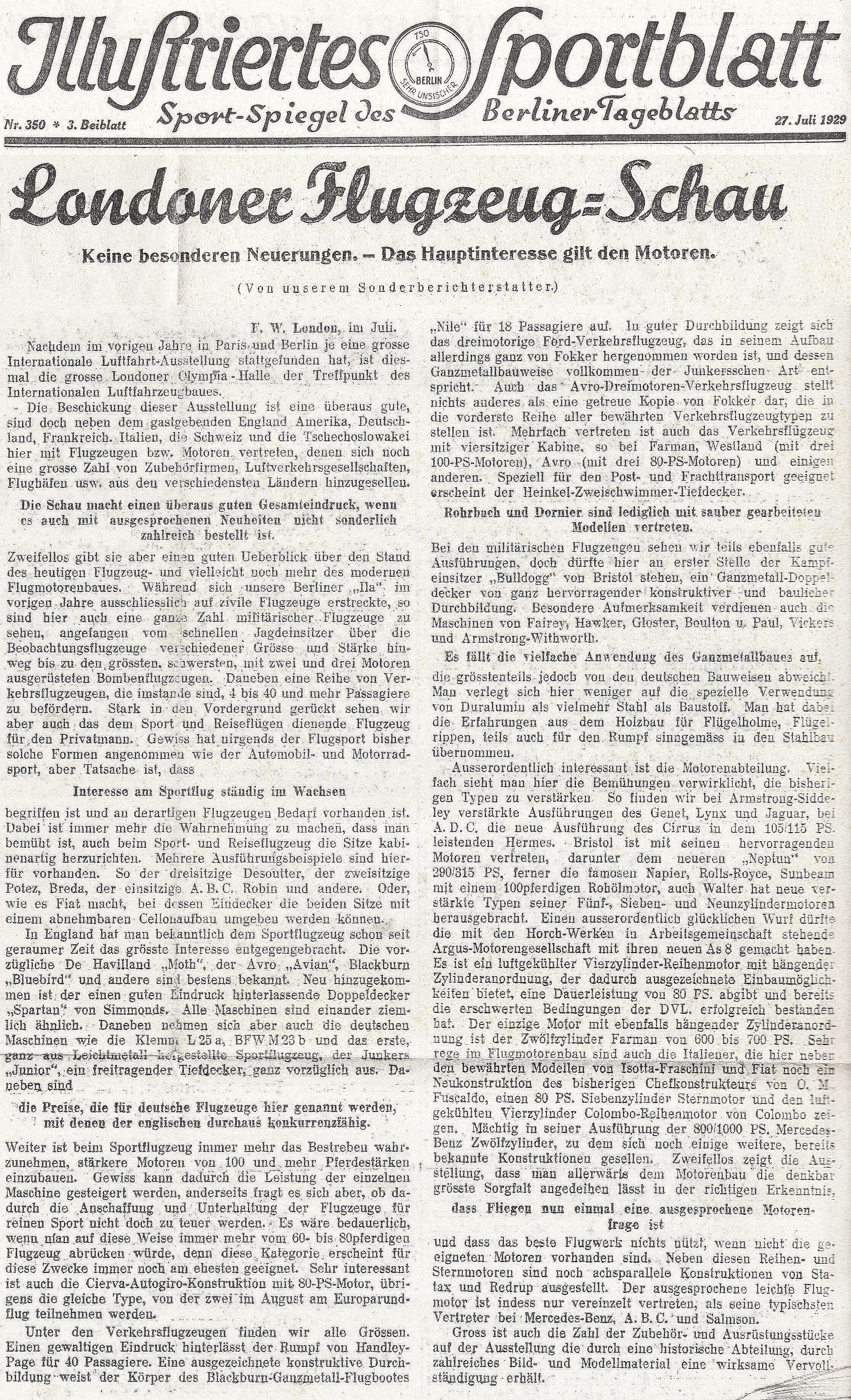 Leider erbrachte die Londoner Ausstellung keine greifbaren Ergebnisse für das Soldenhoff-Konsortium. In einem  Zeitungsartikel über die Veranstaltung „Illustriertes Sportblatt 27.07.1929“ wurde das Flugzeug nicht erwähnt und so kehrte man im August 1929 einigermaßen ernüchtert wieder nach Berlin zurück und begann, das Einfliegen der LF 5 vorzubereiten. Aber auch der Erstflug verlief nicht nach Wunsch.