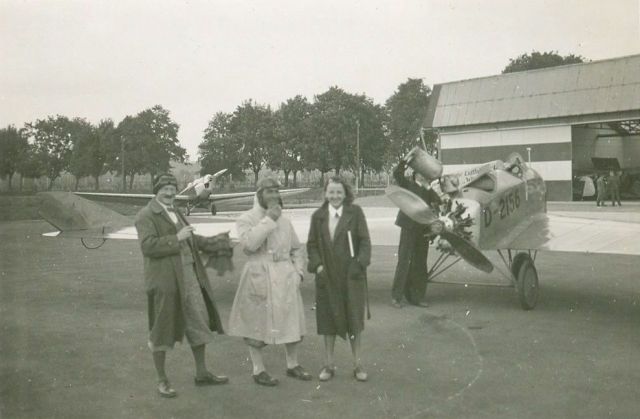 Soldenhoff Flugplatz Böblingen l. Riediger Espenlaub LangguthSoldenhoff A5 links Riediger (im Cockpit), Espenlaub Langguth Friedmann (Eckardt)