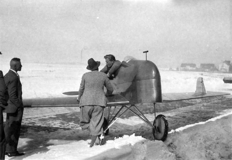 Am 16. Januar 1931 sollten die Rollversuche beginnen, aber das Wetter spielte nicht mit. Erst am 19. Januar 1931 konnte man es wagen, die Maschine aus der Halle ins Freie zu schieben. Der Salmson-Motor wurde angeworfen, A.Riediger machte es sich im vorderen Sitz bequem und dirigierte das Flugzeug langsam auf den stark verschneiten Platz hinaus. Im Anrollen schwang sich Werkmeister Thumm überraschend und unprogrammgemäß in die Maschine und verstaute sein beachtliches Gewicht im hinteren Sitz. Er, der den Vogel gebaut hatte, wollte unbedingt beim ersten Mal mit dabei sein!