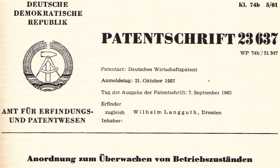 - Nr.23637 DDR Wirtschaftspatent von 1957