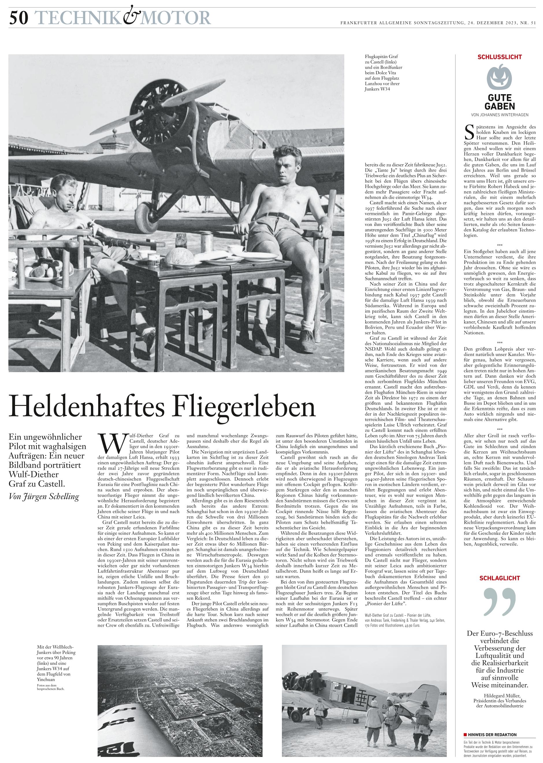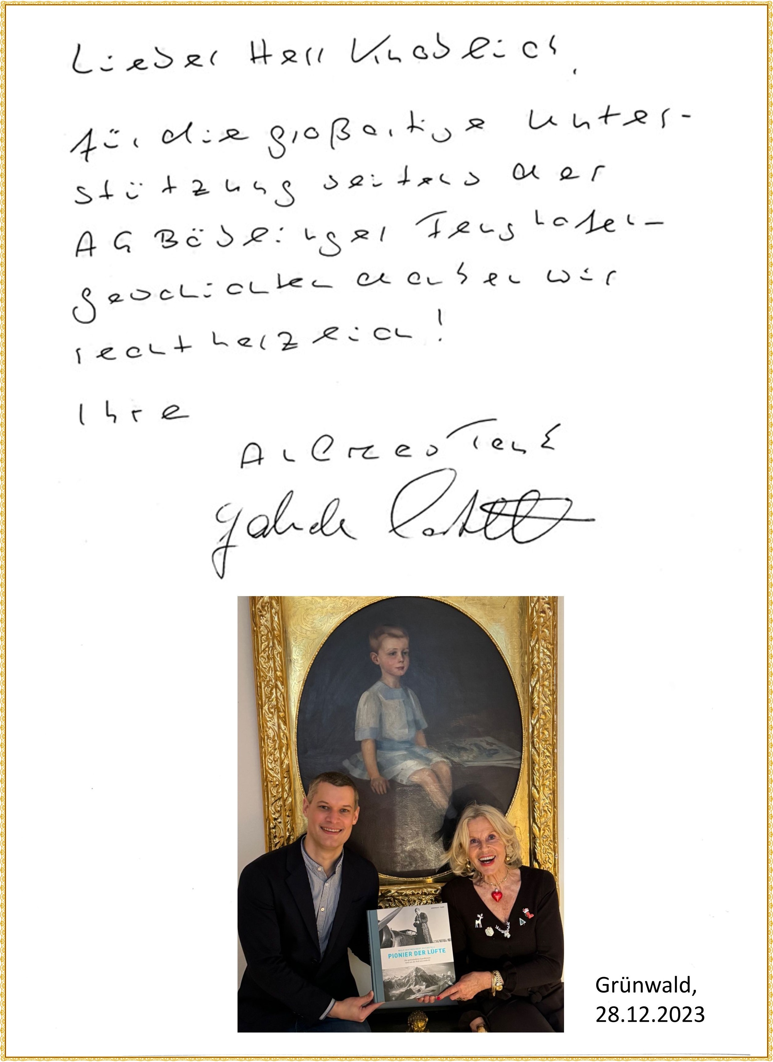 Am 28. Dezember 2023 besuchte Autor Dr. Dr. Andreas Tank erstmals – bedingt durch die Pandemie – die Tochter des Flugpioniers, Gabriele Gräfin zu Castell-Rüdenhausen.