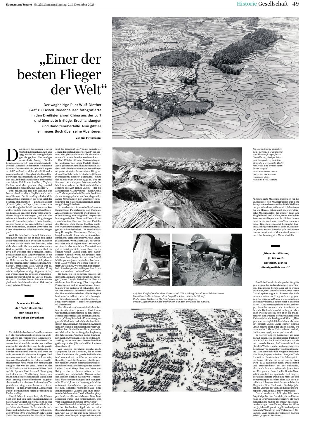 Bei seinen Flügen fotografierte er mit seiner Leica viele Gegenden Chinas aus der Luft, die zuvor kaum ein Europäer gesehen hatte. Eine Auswahl seiner Aufnahmen veröffentlichte Castell 1938 in dem Bildband „Chinaflug“. Als Flugpionier war er auch von 1939 bis 1941 in Südamerika unterwegs und von 1949 bis 1972 Direktor des Flughafens München-Riem und wesentlich an dessen Entwicklung beteiligt. (Informationen z.T. aus Wikipedia)
