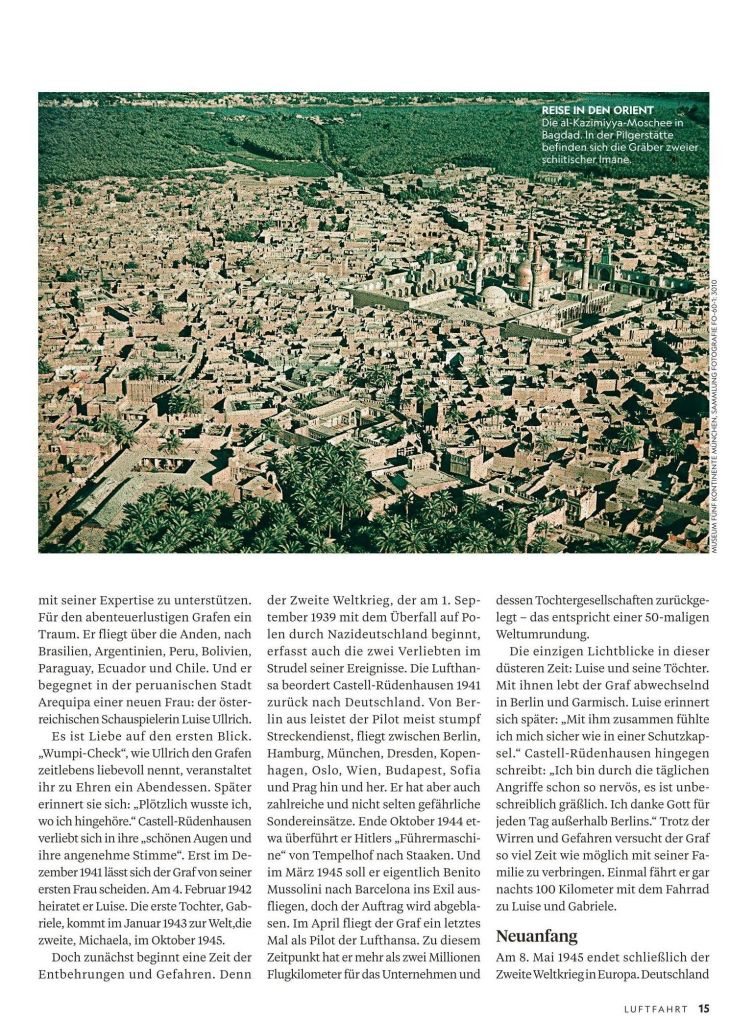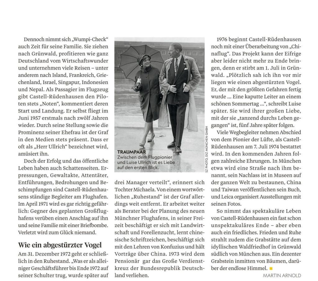.. und noch eine kleine Anmerkung: Michaela Comtesse zu Castell, eine Tochter des Grafen, heiratete 1968 Bernd Rosemeyer, Sohn des legendären Rennfahrers Bernd Rosemeyer (+1938), der mit Elly Beinhorn verheiratet war … und Elly Beinhorn flog mit einem Klemmflugzeug aus Böblingen rund um die Welt. Vor fast 100 Jahren hätten sich der Graf und Elly Beinhorn in Böblingen beinahe begegnen können, nicht ahnend über die spätere Verwandtschaft der Familien Beinhorn und des Grafen.