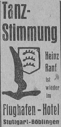 1928-05-12 „Schwäbischer Merkur“ Eröffnung des Flughafenhotels. Aus reinen Zweckmäßigkeitsgründen hat sich seinerzeit die Luftfahrt Württemberg AG dazu entschlossen, in den notwendig gewordenen Neubau des Flughafens ein Hotel einzubauen. In wirklich geschmackvoller Weise ist nun dieser Plan heute verwirklicht. Durch eine geräumige Vorhalle tritt der Besucher in die vornehme, durch ihre Einfachheit geradeso angenehm wirkende Gaststätte. Breite, lichte Fenster gestatten einen freien Blick über den weiten Flugplatz und sein Getriebe. Ein herrliches Bild entfaltet sich von hier aus, wenn die untergehende Sonne mit ihrer goldenen Pracht über die grüne Fläche sich legt, auf der Hunderte von Schafen weidend dahinziehen. Dort fand nun am letzten Samstag die Eröffnungsfeier der Gaststätten unter reger Beteiligung der hiesigen Bevölkerung und zahlreiche Gäste von Stuttgart statt. Unter anderen bemerkte man auch Präsident Kälin, Oberamtmann Rüdiger, Medizinalrat Dr. Maier, Vertreter der Reichspost und Reichseisenbahn und verschiedene Beamte vom Flughafen. Reicher Blumenschmuck auf einem raumangepaßten Aufbau inmitten der gedeckten Tafeln, über die sich durch die vornehm wirkenden Beleuchtungskörper eine unaufdringliche Helle verbreitete, verlieh dem Raume eine festliche Wirkung. Eine Streichkapelle unter Leitung von Musikdirektor Benning würzte mit musikalischen Genüssen das leckere Mahl. Der Vorplatz war zur Tanzdiele umgewandelt. In der Bauernstube im Untergeschoss wurde dem Bier zugesprochen und nach Herzenslust gesungen. Auch dort spielte eine Kapelle auf. Von jedem der Gäste aber hatte man den Eindruck, dass er sich in jeder Beziehung wohlfühlte und den Räumen gerne wieder einen Besuch abstatten wird. H.Diener vom „Schwabenbräu Stuttgart“ und H.Götz sind die beste Gewähr dafür, dass die Gaststätten sich den Ruf erhalten, den sie sich bei der Eröffnung schufen.