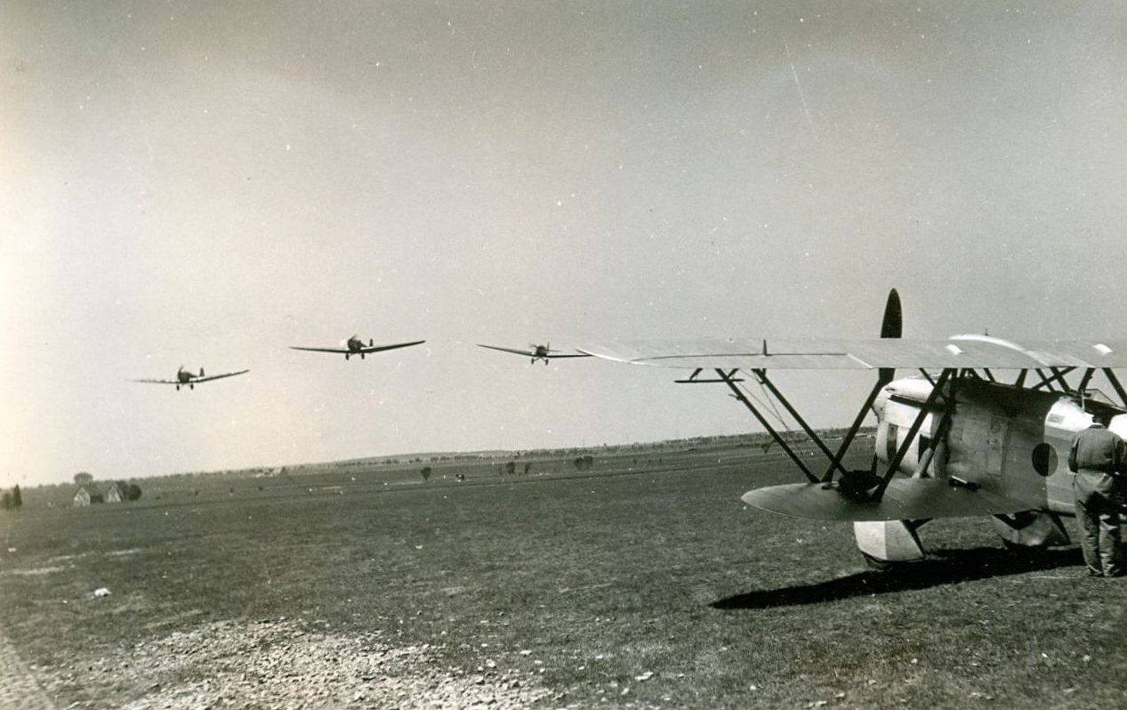 Den Besuch italienischer Flieger im benachbarten Böblingen benützte die Fliegerortsgruppe Karlsruhe des DLV zu einem Geschwaderflug zu Ehren der italienischen Gäste nach Böblingen. Wir hatten Gelegenheit im Führer-Flugzeug, das von Ministerialrat Kraft gesteuert wurde,- die beiden anderen Karlsruher Flugzeuge führten der einstige Kriegspilot Ritscherle und der Karlsruher Segelflieger Dipl.- Hifmann – den Geschwaderflug nach Böblingen mitzumachen, der auf dem Böblinger Flugplatz unvergessliche flugsportliche Eindrücke vermittelte. In Böblingen herrschte am Mittwoch Hochbetrieb. Während die elf wunderbaren italienischen Jagdeinsitzer militärisch begrüßt wurden, landeten Verkehrsmaschinen aus allen Herrn Länder. Da war die große dreimotorige Rohrbach zur Luftreise nach Barcelona startbereit. Eine tadellose Condor- Verkehrsmaschine, in der Form unserer Blitz-Flugzeuge (Heinkel He70), brachte die Gäste aus der Schweiz, und eine Junkers-Maschine vermittelte den Luftverkehr nach der Reichshauptstadt.