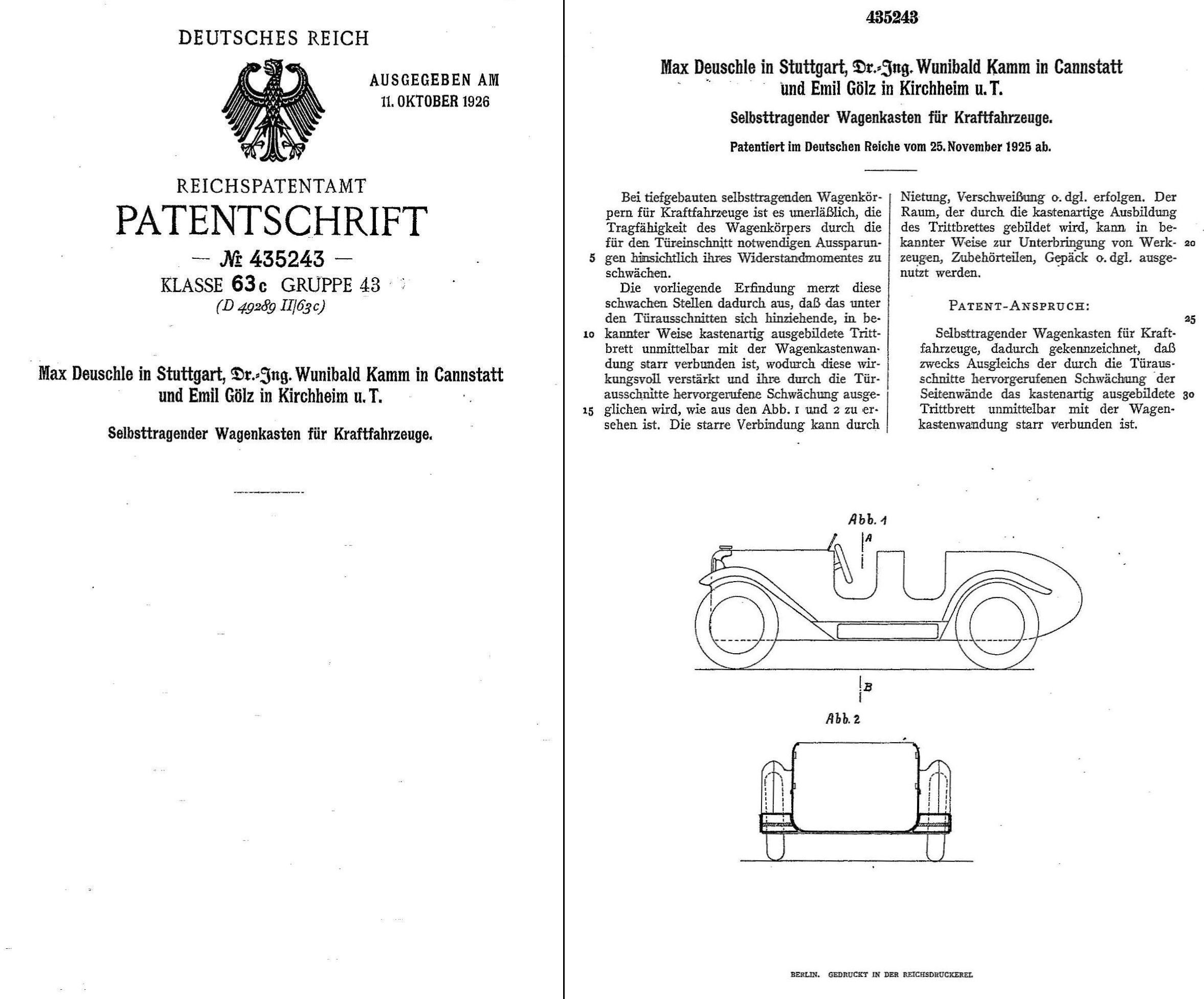 Das junge und unkonventionelle Expertenteam, das sich in der Böblinger Versuchswerkstatt an die Arbeit machte, schuf eine richtungsweisende Konstruktion mit Vorderradantrieb, Einzelradaufhängung und Vierradbremssystem und selbsttragender Leichtmetallkarosserie. Diese Karosserie wurde als – sebsttragender Wagenkasten für Kraftfahrzeuge – am 25. November 1925 patentiert.