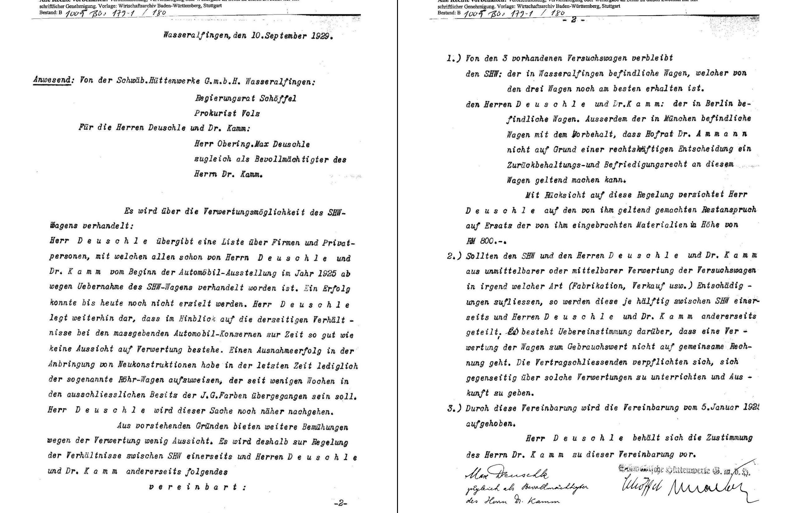 An einen Fahrzeugbau hatten die Beteiligten zunächst nicht gedacht, doch der designierte Werksdirektor Wunibald Kamm (1893-1966) – der nach 1930 zu den einflussreichsten deutschen Automobilkonstrukteuren zählte – brachte diese Idee und einen entsprechenden Versuchswagen mit.