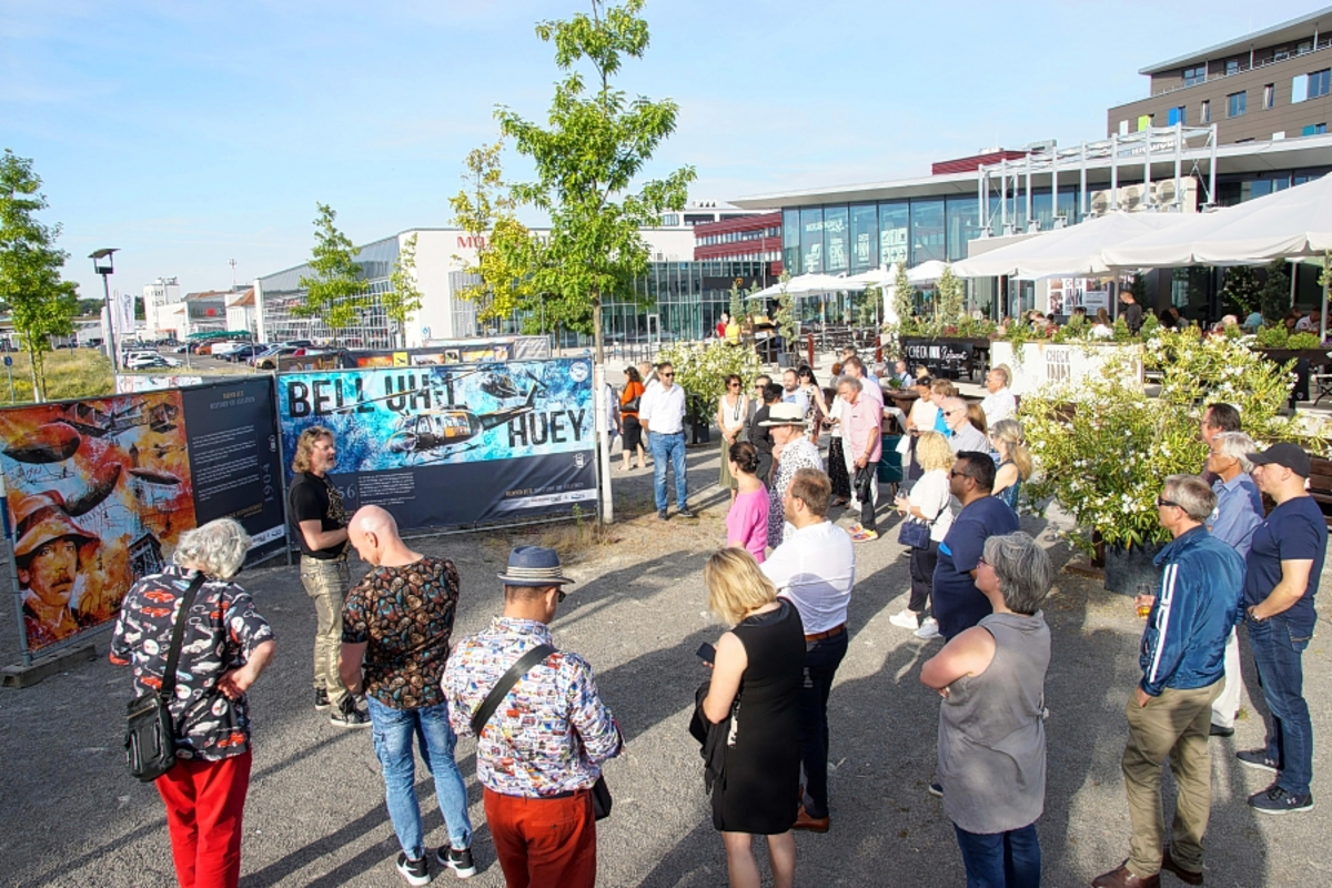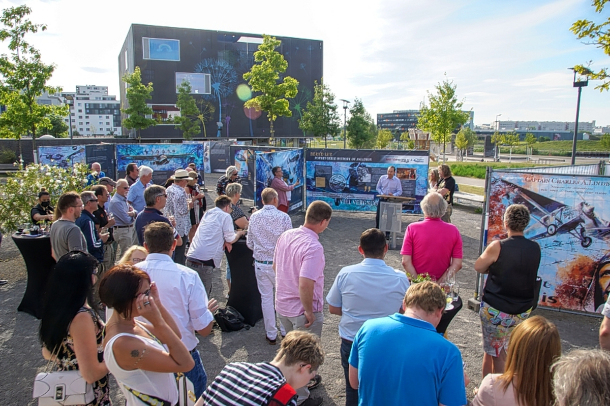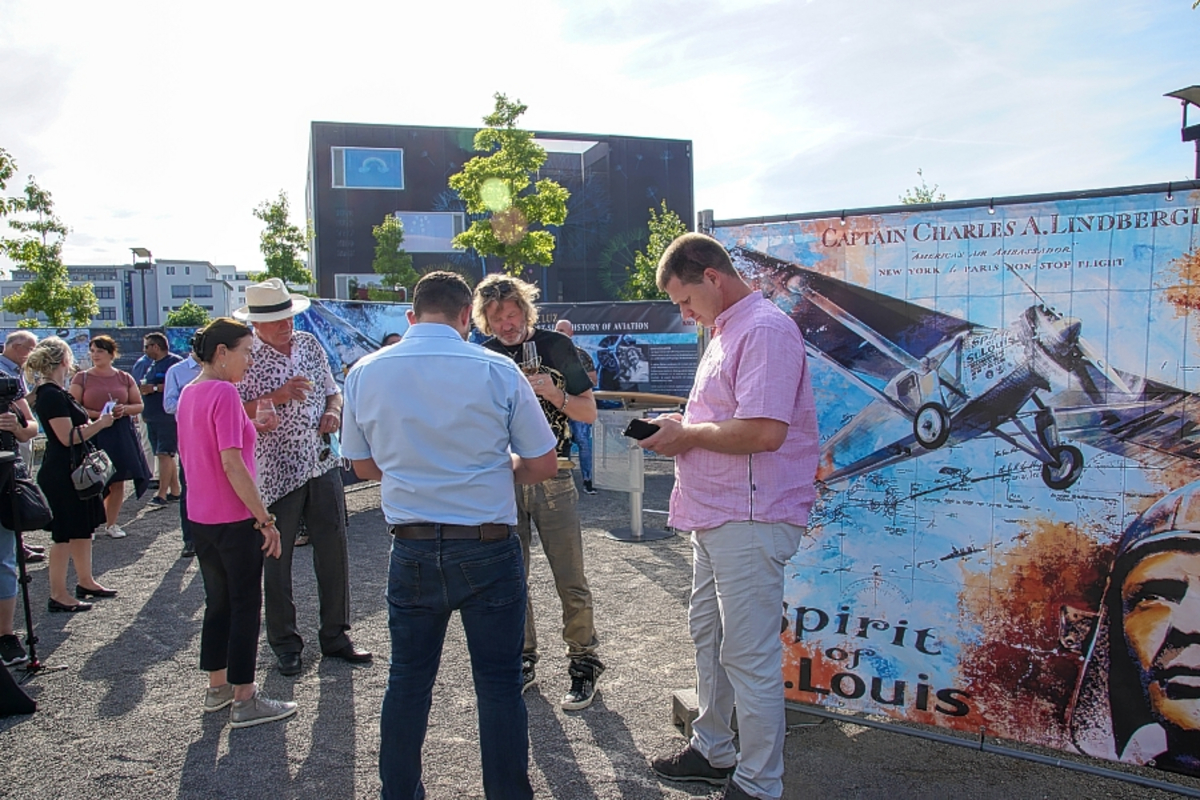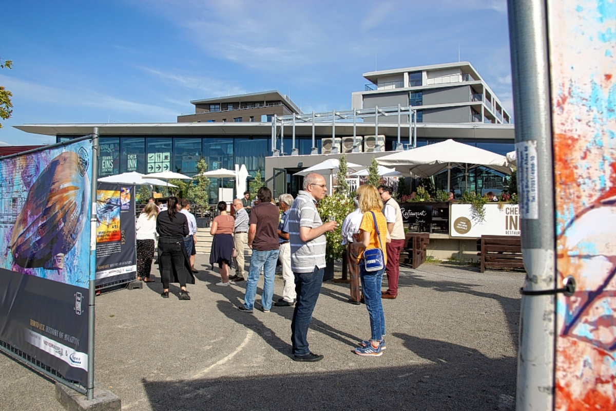 Die Eröffnung der Ausstellung mit Stefan Belz (OB Böblingen) Susanne Kirschbaum (Centermanagerin Motorworld und Bernd Luz (Künstler) (Frank Dettenmeyer)