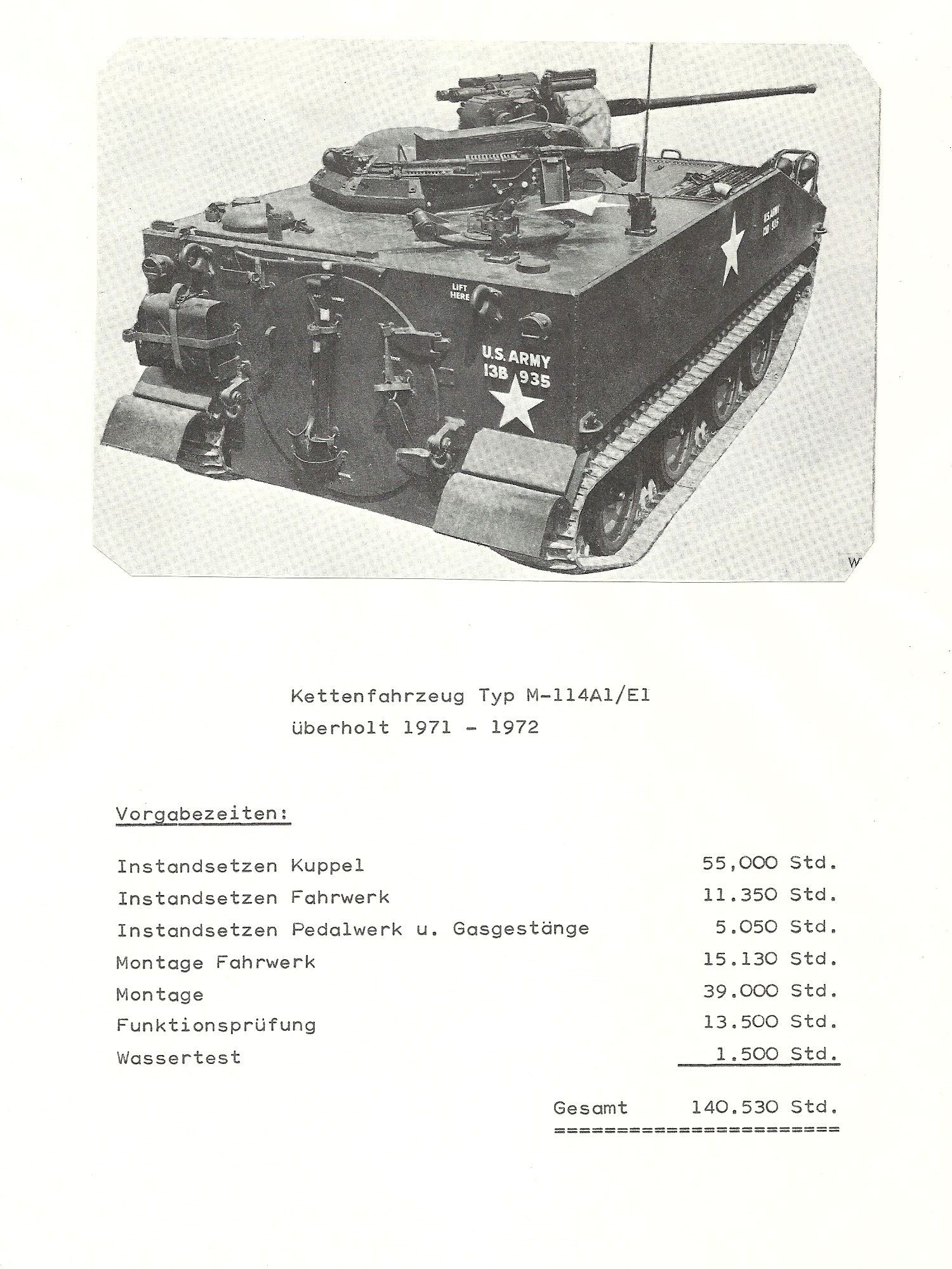 Das technische Equipment wurde nach Vorgabezeiten instandgesetzt, hier als Beispiel für das Kettenfahrzeug Typ M-114