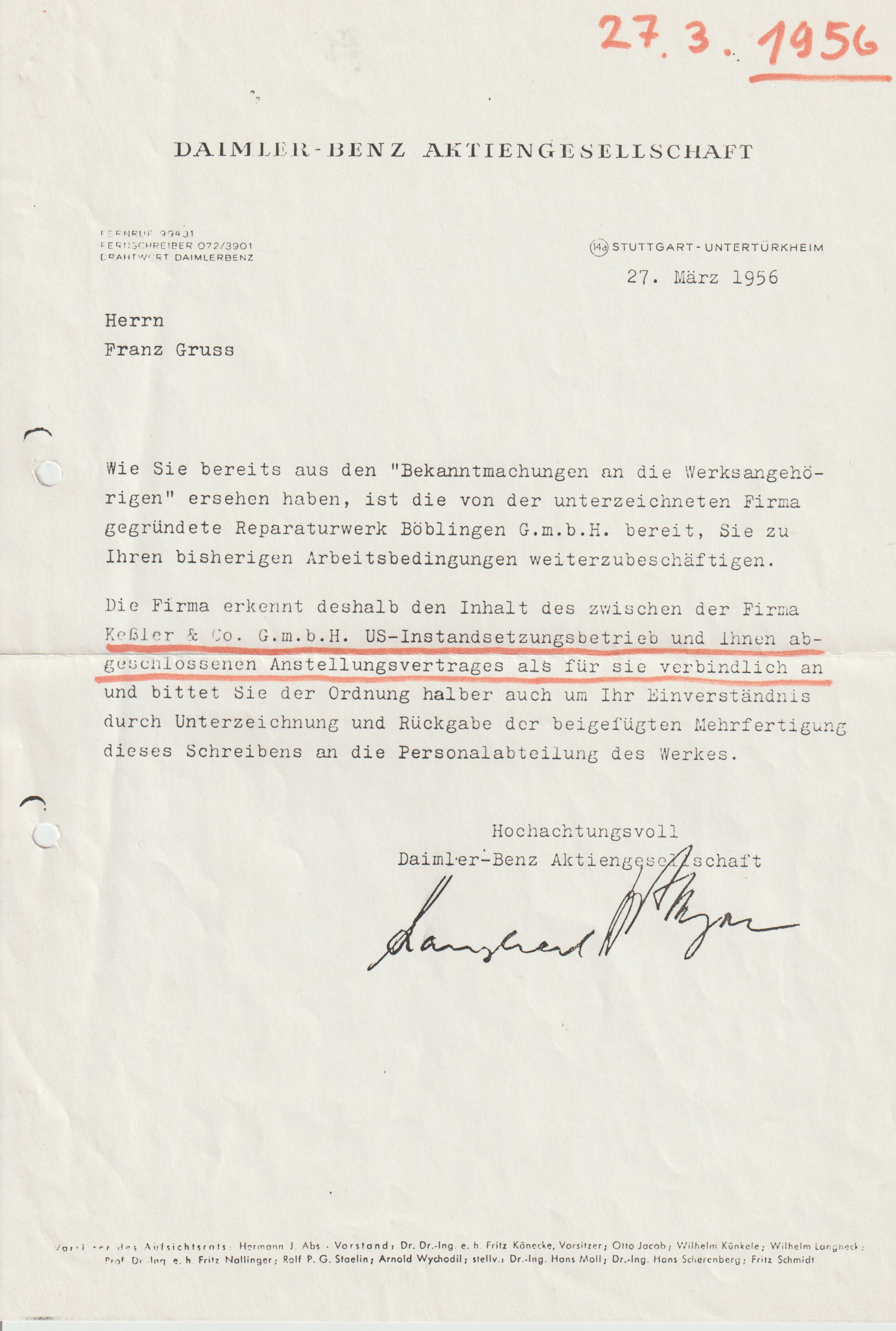 Böblingen war eines der von der U.S.Army betriebenen Wiederaufarbeitungs-Standorte, der am 1. Juni 1948 von der Firma Daimler-Benz A.G. im Rahmen eines Vertragsverhältnisses übernommen wurde.