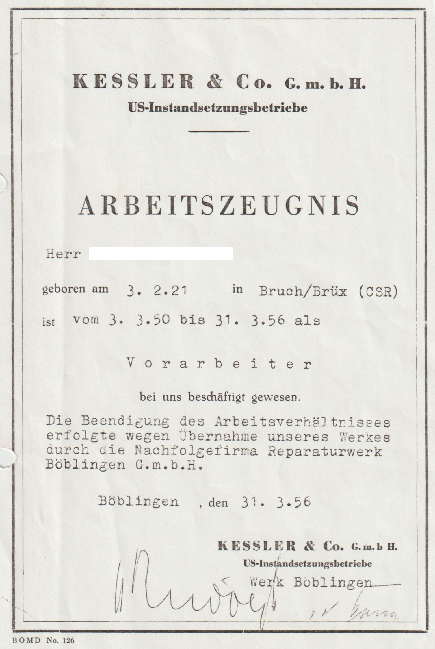Am 1. März 1950 übernahm die Firma Keßler & Co. aus Wasseralfingen die Aufarbeitung, die den Betrieb bis zum 31. März 1956 auf eigenen Wunsch beendete. Aus dieser Zeit zwei Dokumente