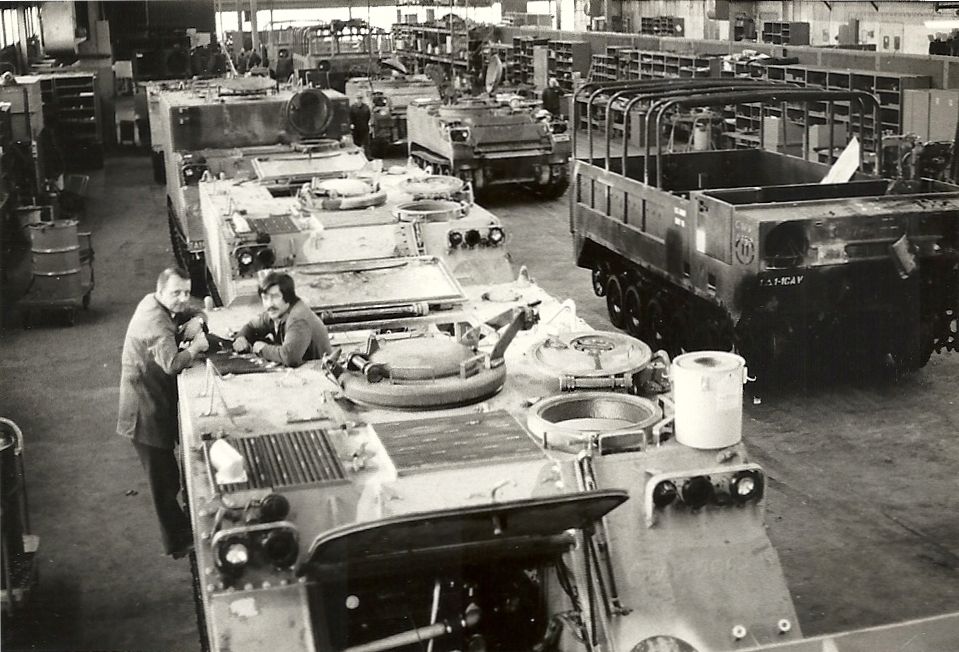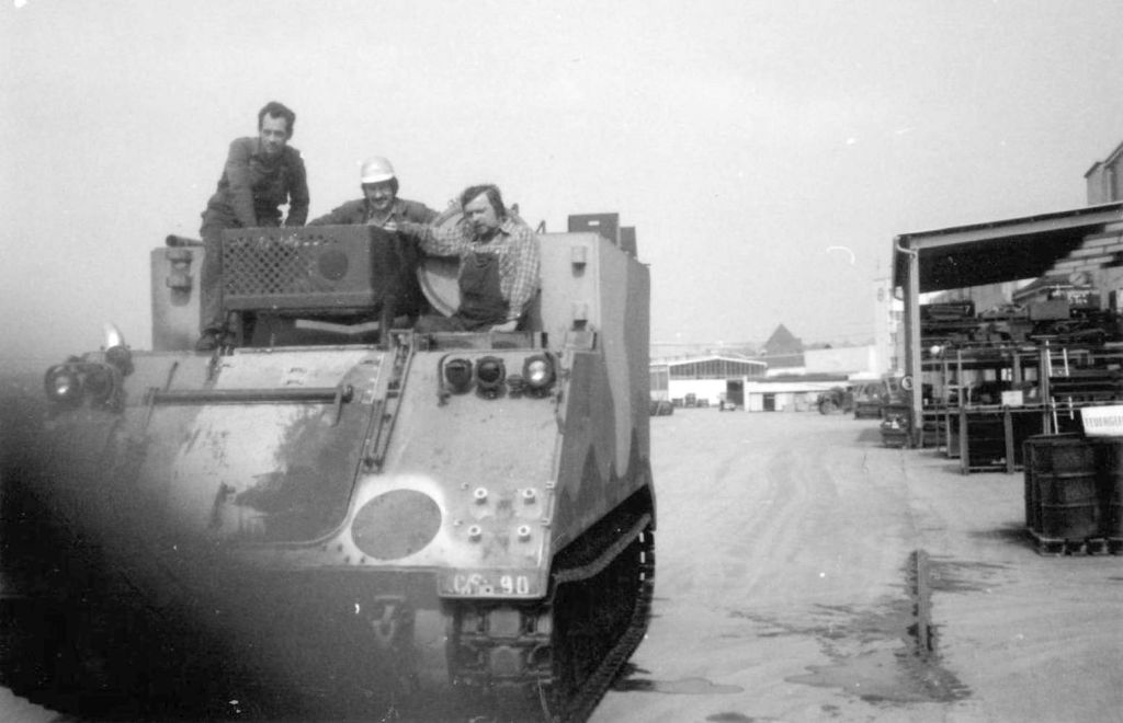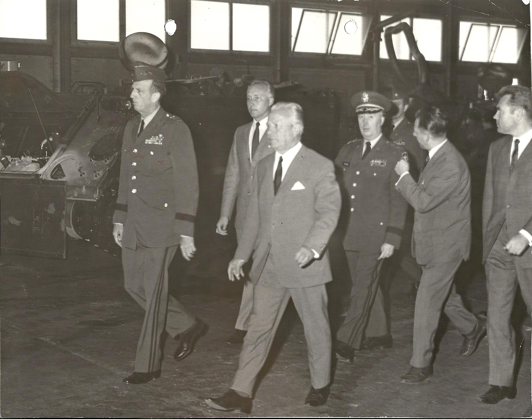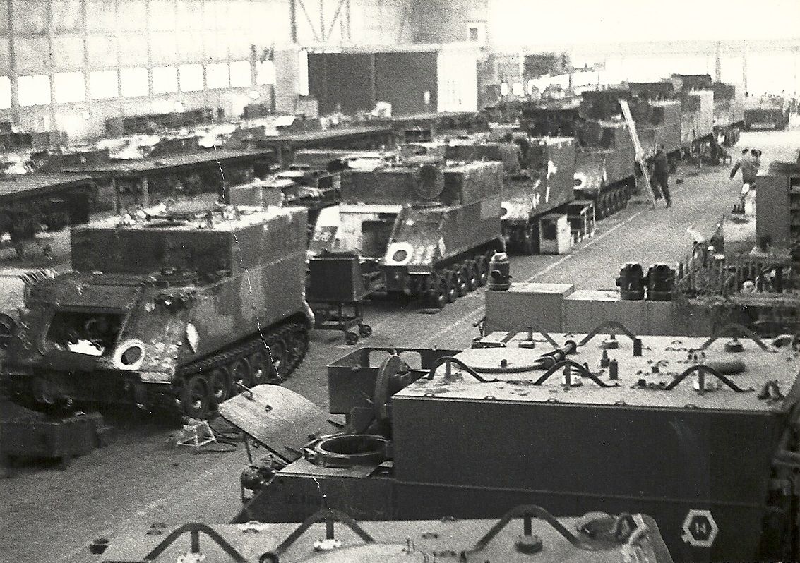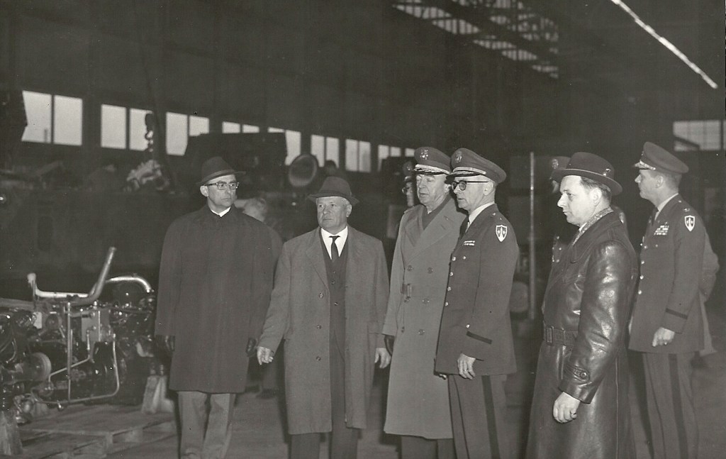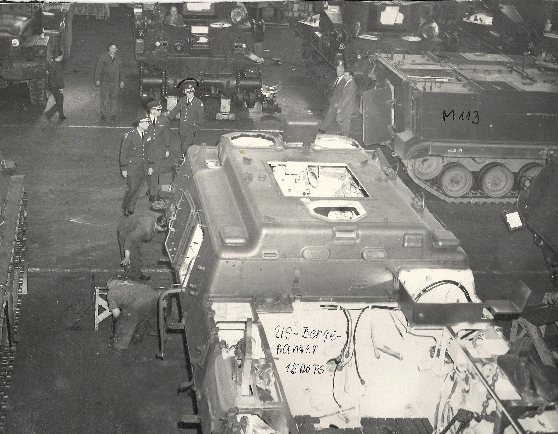 Rundgang 2.Dr.Schomburg 3.Hinterberger (technischer Direktor) 4.Hänsch (technischer Betriebsleiter) 6.Giegrich (Chef Produktion)1966 vl. 2.Hinterberger (technischer Direktor) 5.Hänsch (Betriebsleiter)General zuständig für Nahost – Bergepanzer M113 HG Schomburg + HänschHalle 13 – Waschanlage vl. 1.Hänsch (technischer Betriebsleiter) 5.Griegrich (Chef Produktion) neben FE u. Al Waschanlage – hintere Reihe vr. 1.Bittelmeyer 3.Göttlicher 6.Schomburg vordere Reihe vr. 3 Betriebsrat.Halle 13 – Waschanlage – Vorstellung Dr.Schomburg