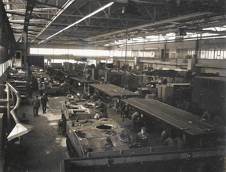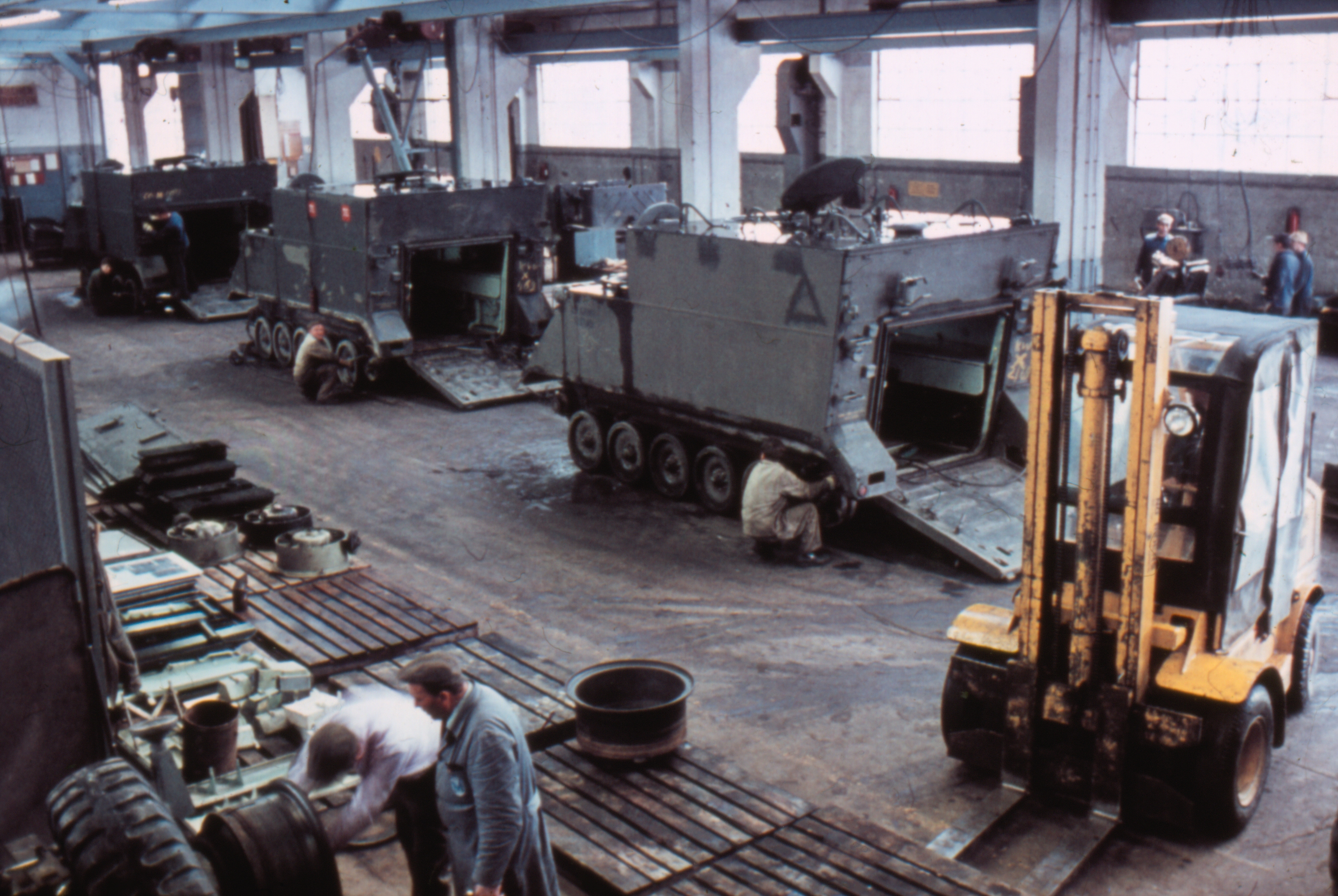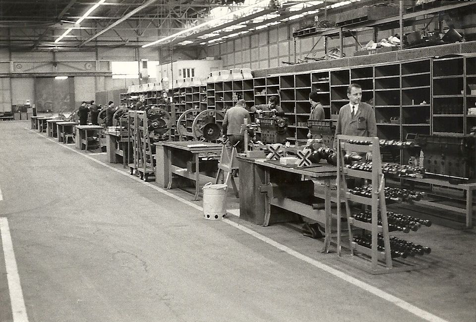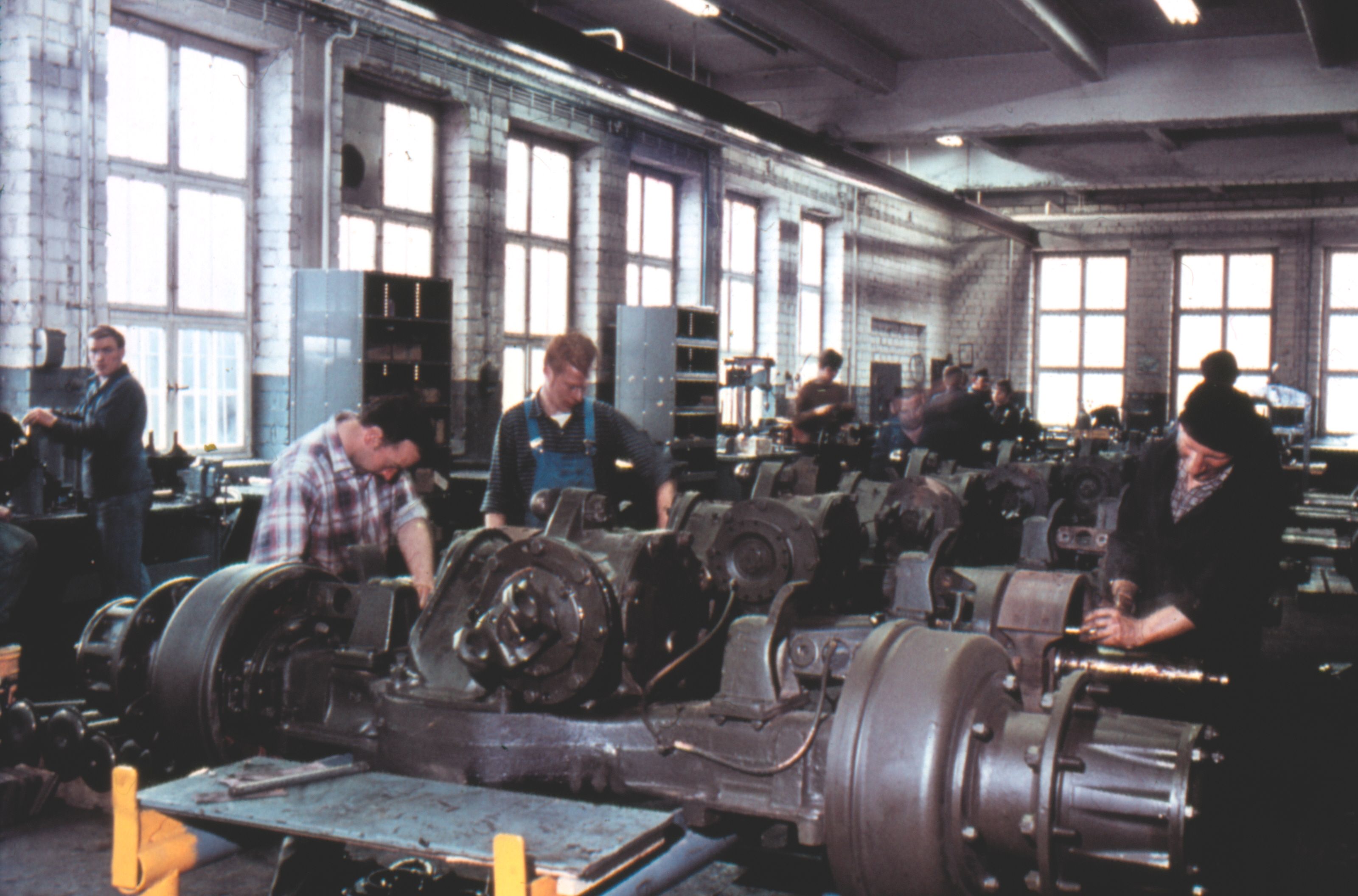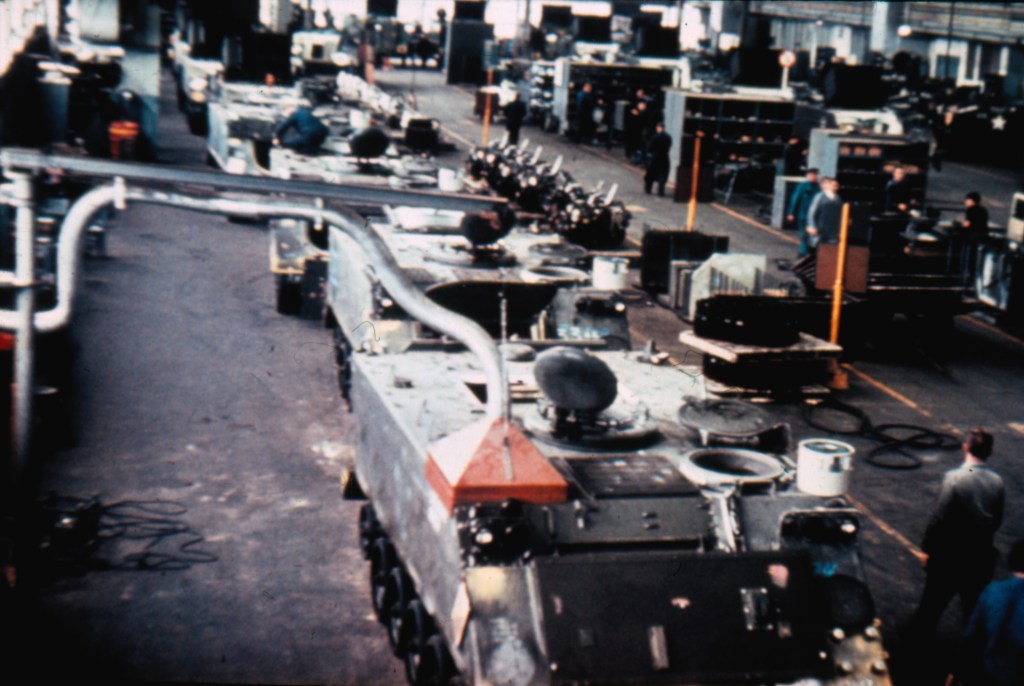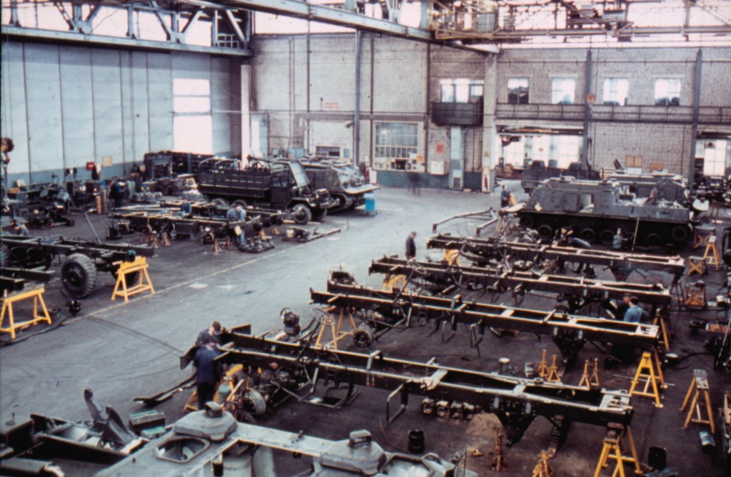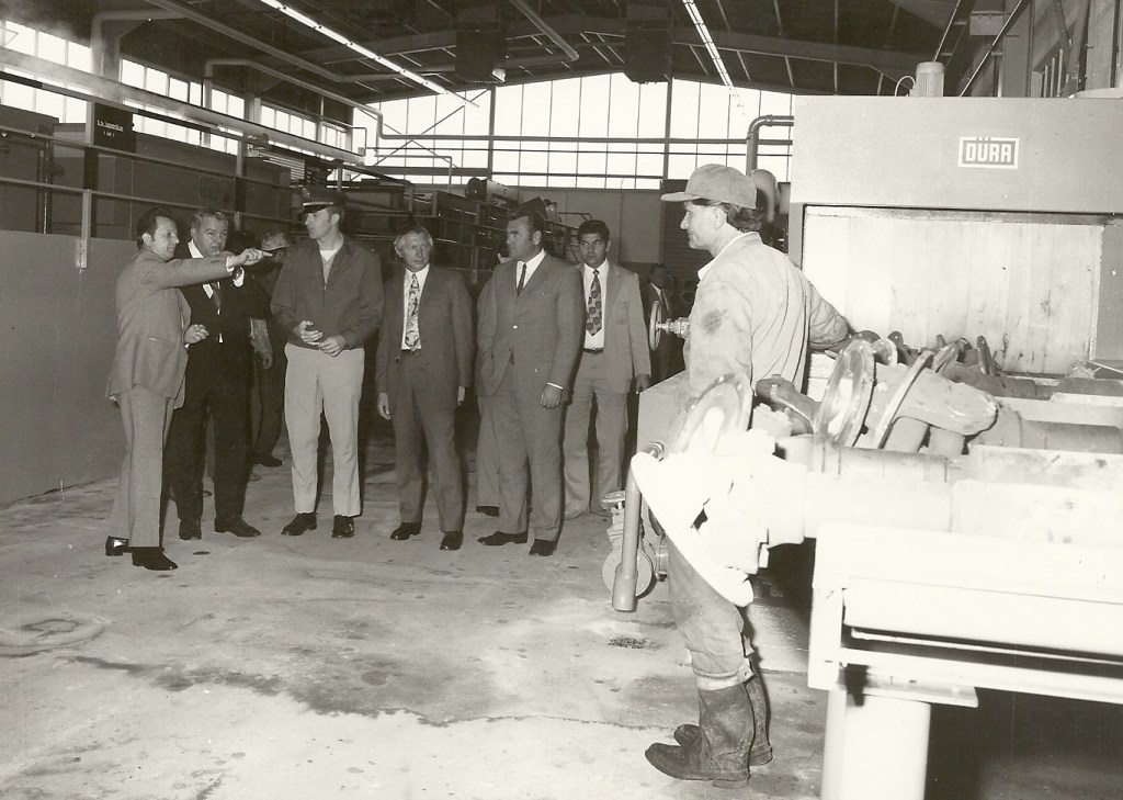Rundgang 2.Dr.Schomburg 3.Hinterberger (technischer Direktor) 4.Hänsch (technischer Betriebsleiter) 6.Giegrich (Chef Produktion)1966 vl. 2.Hinterberger (technischer Direktor) 5.Hänsch (Betriebsleiter)General zuständig für Nahost – Bergepanzer M113 HG Schomburg + HänschHalle 13 – Waschanlage vl. 1.Hänsch (technischer Betriebsleiter) 5.Griegrich (Chef Produktion) neben FE u. Al Waschanlage – hintere Reihe vr. 1.Bittelmeyer 3.Göttlicher 6.Schomburg vordere Reihe vr. 3 Betriebsrat.Halle 13 – Waschanlage – Vorstellung Dr.Schomburg