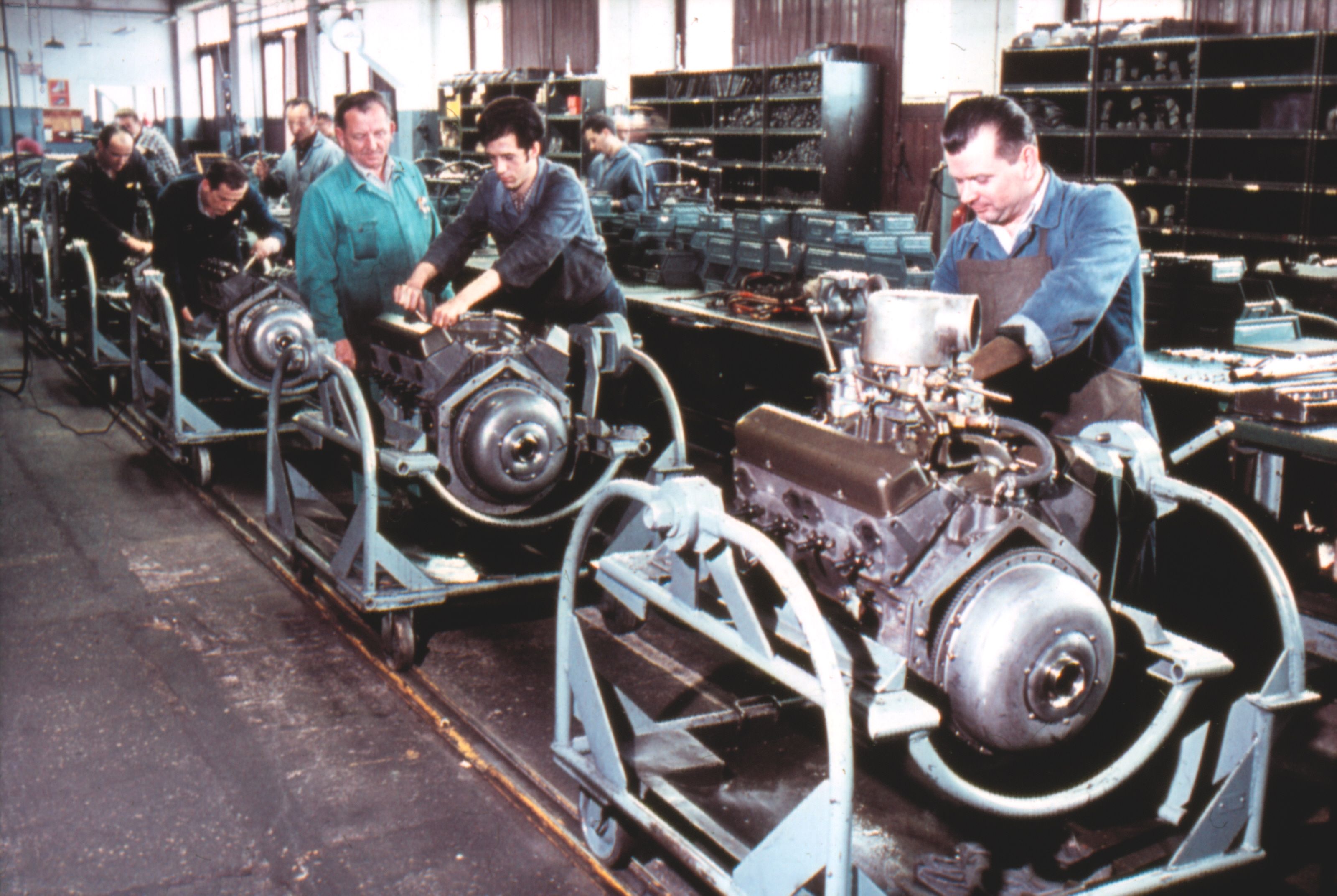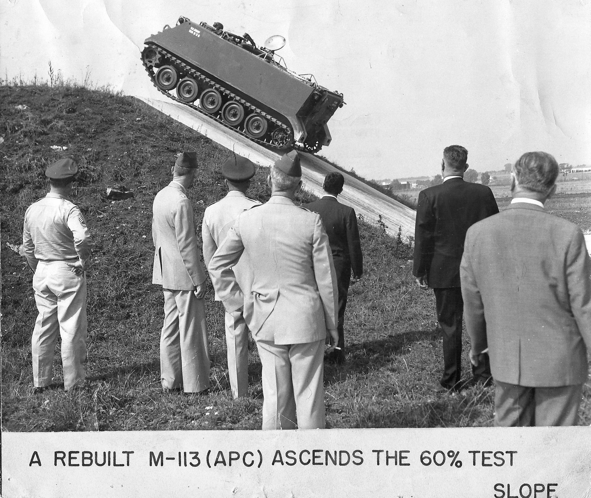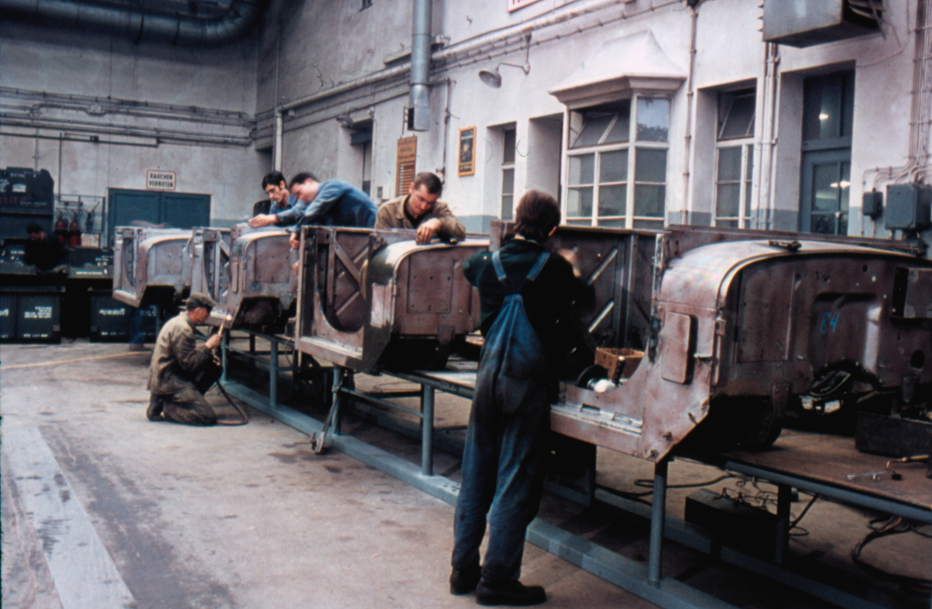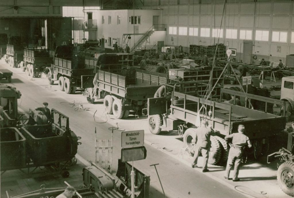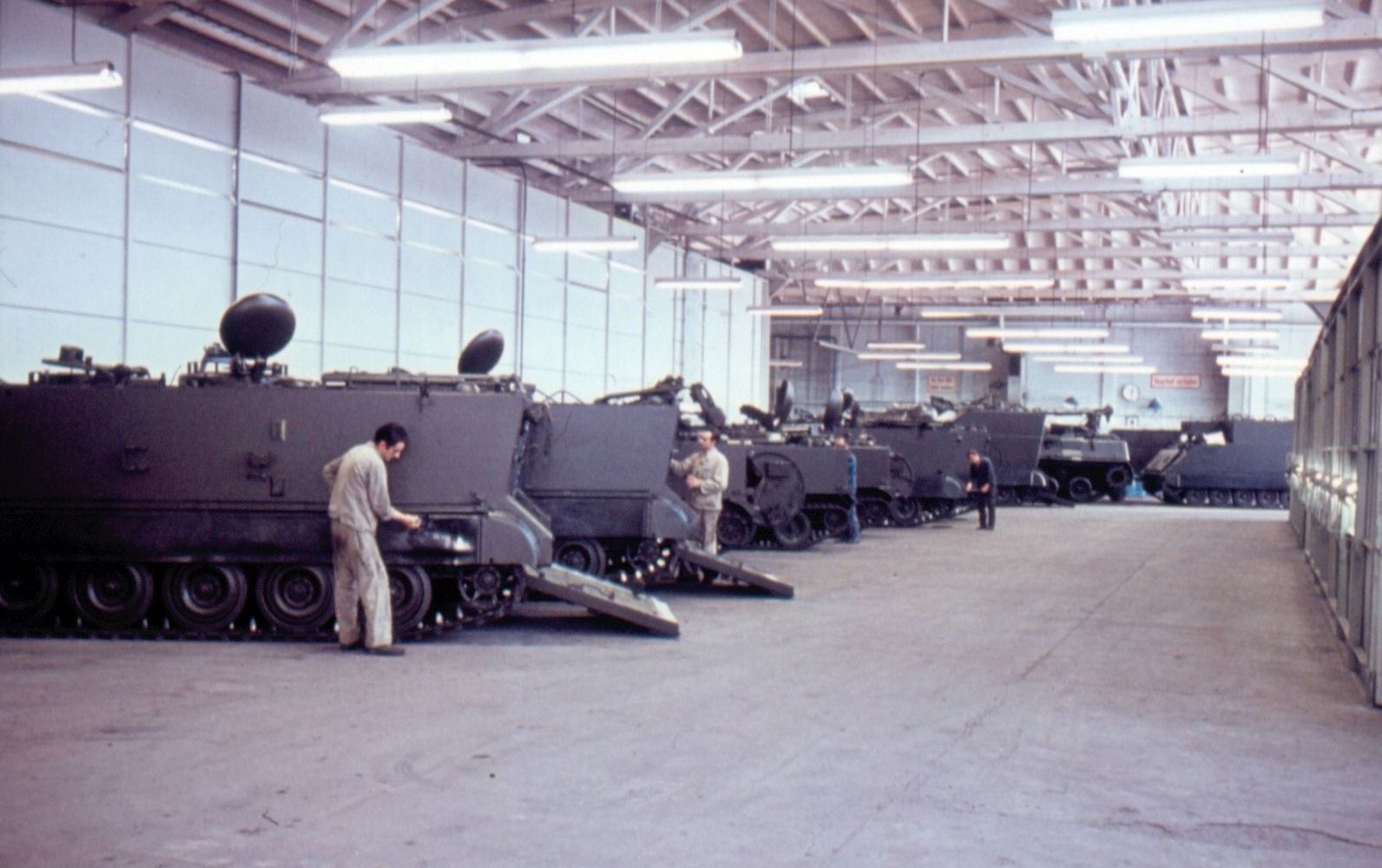 Rundgang 2.Dr.Schomburg 3.Hinterberger (technischer Direktor) 4.Hänsch (technischer Betriebsleiter) 6.Giegrich (Chef Produktion)1966 vl. 2.Hinterberger (technischer Direktor) 5.Hänsch (Betriebsleiter)General zuständig für Nahost – Bergepanzer M113 HG Schomburg + HänschHalle 13 – Waschanlage vl. 1.Hänsch (technischer Betriebsleiter) 5.Griegrich (Chef Produktion) neben FE u. Al Waschanlage – hintere Reihe vr. 1.Bittelmeyer 3.Göttlicher 6.Schomburg vordere Reihe vr. 3 Betriebsrat.Halle 13 – Waschanlage – Vorstellung Dr.Schomburg