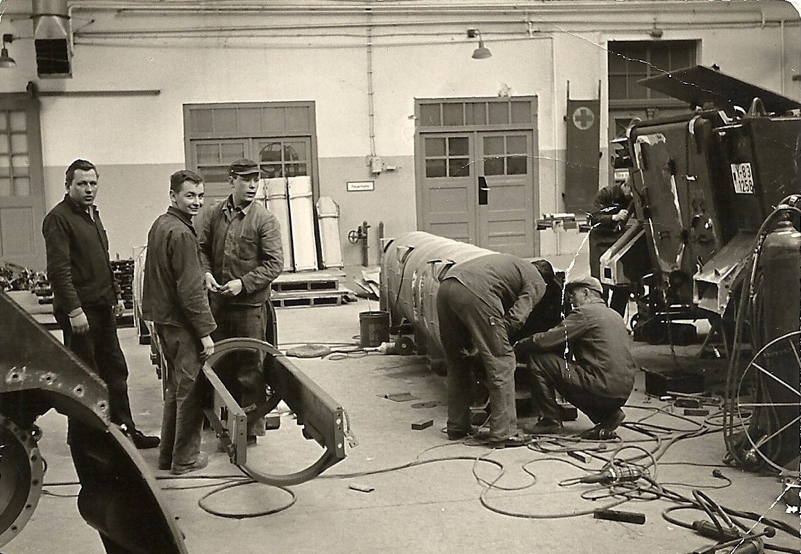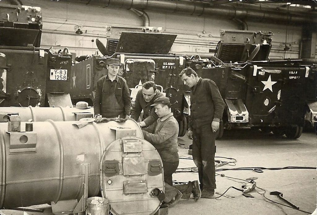 Halle 4Halle 4Halle 5 – AufenthaltsraumMotorenwaschanlageMotorenwaschanlageMotorenwaschanlagerechts Herr Pratzler1961-06-30 (Eltkins)Sonderauftrag Raketenbehälter Honest John – Halle 3Sonderauftrag Raketenbehälter Honest John – Halle 3 Herr Angladagis kniet, M 103Sonderauftrag Raketenbehälter Honest John Halle 3