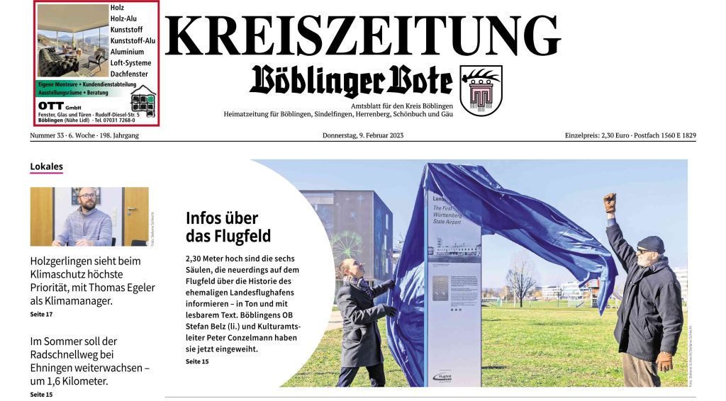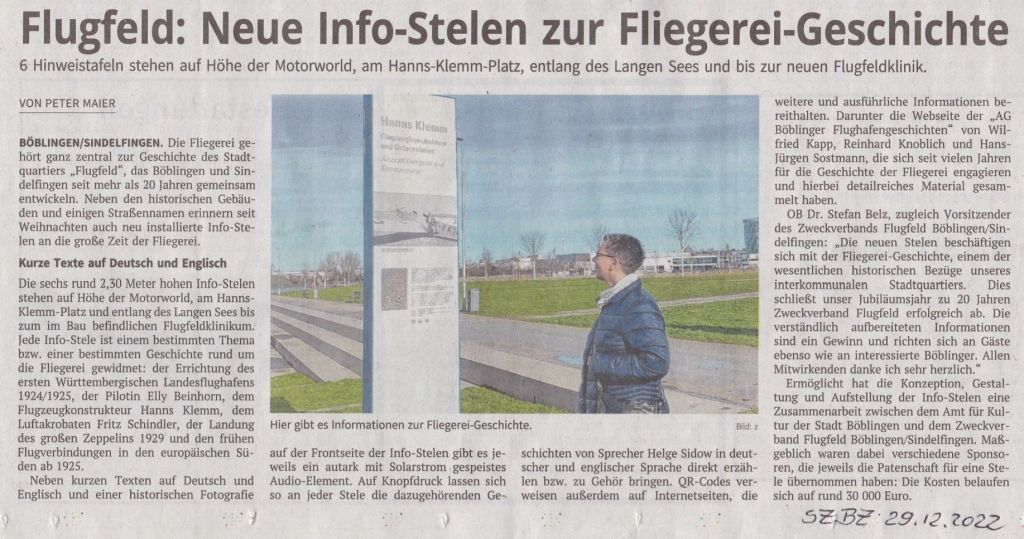 (Quelle: Neue Info-Stelen zur Fliegerei-Geschichte auf dem Flugfeld – Stadtverwaltung Böblingen 2023)