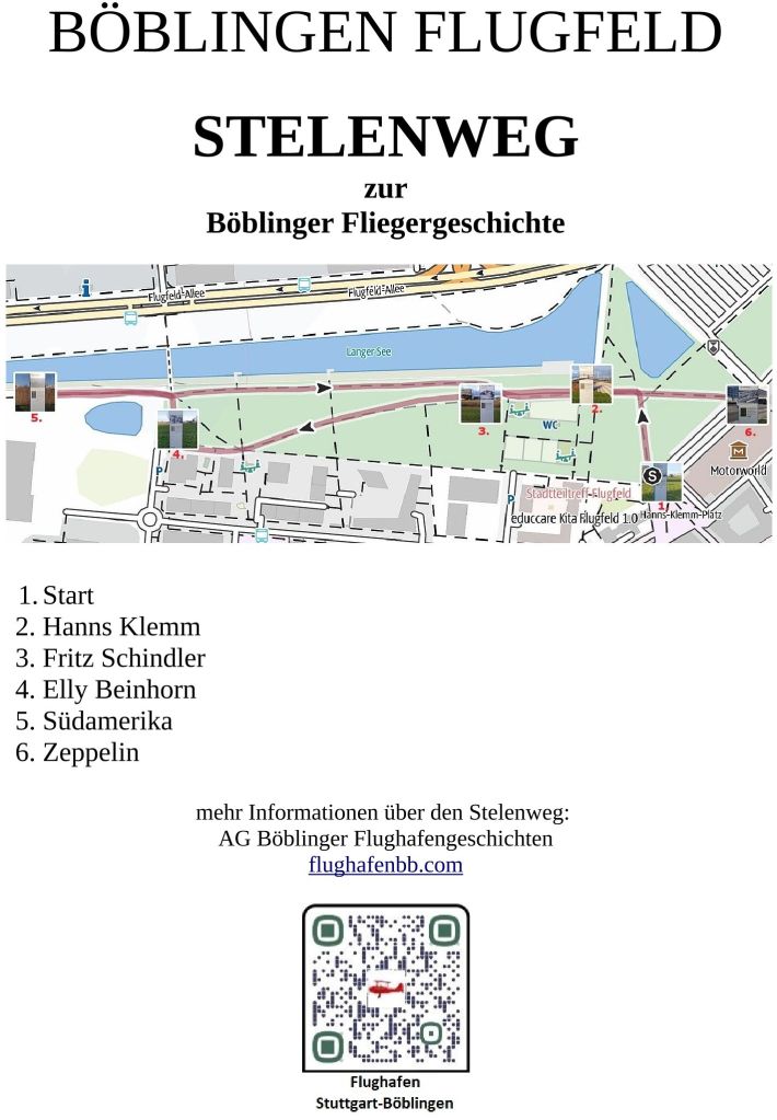 QR-Codes verweisen außerdem auf Internetseiten, die weitere und ausführliche Informationen bereithalten. Darunter die Webseite der „AG Böblinger Flughafengeschichten“ von Wilfried Kapp, Reinhard Knoblich und Hans-Jürgen Sostmann, die sich seit vielen Jahren für die Geschichte der Fliegerei engagieren und hierbei detailreiches Material gesammelt haben. Oberbürgermeister Dr. Stefan Belz, zugleich Vorsitzender des Zweckverbands Flugfeld Böblingen/Sindelfingen: „Die neuen Stelen beschäftigen sich mit der Fliegerei-Geschichte, einem der wesentlichen historischen Bezüge unseres interkommunalen Stadtquartiers. Dies schließt unser Jubiläumsjahr zu 20 Jahren Zweckverband Flugfeld erfolgreich ab. Die verständlich aufbereiteten Informationen sind ein Gewinn und richten sich an Gäste und Touristen ebenso wie an interessierte Böblinger*innen und Sindelfinger*innen. Allen Mitwirkenden danke ich dafür sehr herzlich.“