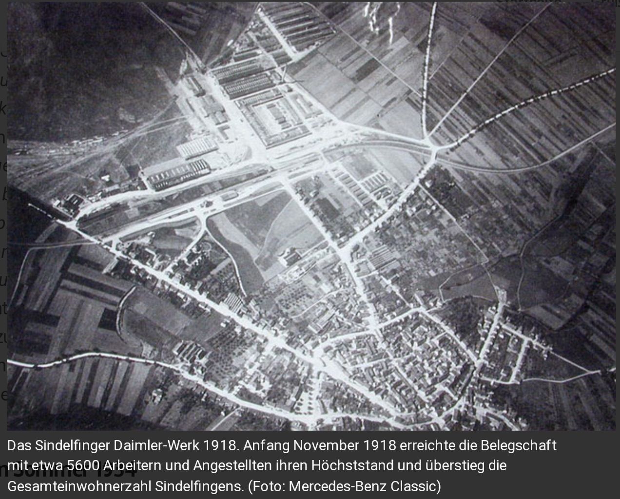 Am 18. November 1915 berichtete das „Neue Wiener Abendblatt: Daimler Motoren Gesellschaft Stuttgat-Untertürkheim. Nachdem die Gesellschaft in letzter Zeit wiederholt Tarrainankäufe vorgenommen hat, so in Berlin-Marienfelde, und in Stuttgart-Untertprkheim zur Arrondierung ihres dortigen Grundstückbeseitzes, hat das Unternehmen wie die „FrankfurterZtg.“ berichtet, nunmehr auch von der Stadtgemeinde Sindelfingen bei Suttgart weitere, ziemlich erhebliche Grundstückserwerbungen vorgenommen, die für die Zewecke des Flugzeugbaues Verwendung finden sollen.
