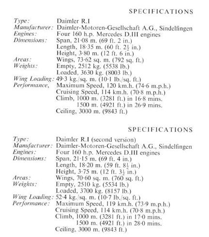 Während Triebwerksprobleme behoben wurden, wurde die Flugzeugzelle mehrmals verstärkt. Zwischen 1915 und 1917 wurden mindestens drei verschiedene Flügelbaugruppen im Flug getestet. Die R1 wurde mit einem großen Heck gebaut, um die Kurskontrolle zu verbessern. Idflieg interessierte sich für R1, zuerst als Experimental und dann als Trainer für Bomber der G-Klasse. Obwohl die Leistungsmerkmale des Daimler R1 nicht sehr ermutigend waren, entschied man sich zu einer verbesserten Version.