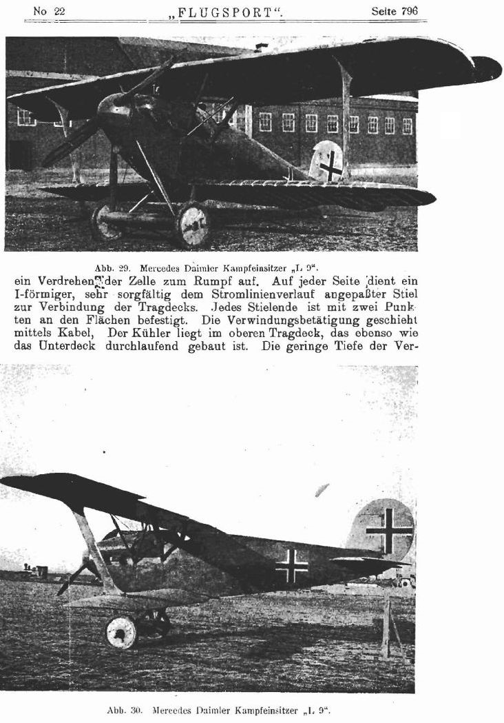 Der einsitzige Jäger L 9 war im Wesentlichen eine raffinierte Weiterentwicklung des L 6, verzichtete auf Zwischenebenenverstrebungsdrähte und hatte versetzte Flügel und neue vertikale Heckflächen. Er verwendete einen ähnlichen Daimler D IIIb-Motor mit 186 PS. Es war beabsichtigt, eine Bewaffnung aus zwei synchronisierten 7,92-mm-LMG 08/15-Maschinengewehren zu tragen. Die L 9 wurde ursprünglich im Juli 1918 mit vollständig freitragenden Flügeln geflogen und im August durch Hinzufügen von Zwischenebenenstreben vom Typ I des Tragflächenprofils modifiziert. Hanns Klemm war am 1. April 1918 als Chefdesigner in die Flugzeugabteilung von Daimler eingetreten, und der L 9 verkörperte offenbar einige seiner Ideen. Es wurde nur ein Prototyp fertiggestellt und kein Produktionsauftrag vergeben. Daimler bot die L 9 1920 in modifizierter Form für den Postdienst an, konnte jedoch keinen Käufer gewinnen.