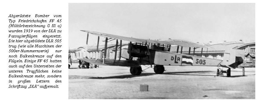 Da es zu dieser Zeit kein Zivilregistrierungssytem gab, erhielten die Maschinen Flotten-Nr. des DLR. Insgesamt wurden 6 G.IIIa-Zivilmaschinen mit den Nr. DLR 503-508 eingesetzt. Diese DLR-Nr. hielten nur kurze Zeit an, als das Reichsluftfahrtministerium im Februar 1919 ein Zivilregister einführte. Dieses wurde als Luftfahrtrolle bezeichnet. Die gezeigte DLR 503 wurde als D-121 (ab Mai 1920 neu D-28) umnummeriert.