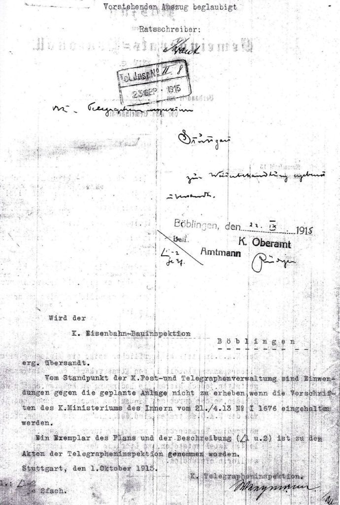 Dazu ein Brief der Stuttgarter Garnisons-Verwaltung an die Bauleitung des Flugplatzes Böblingen (Quelle Hauptstaatsarchiv Stuttgart) : Stuttgart, den 20.März 1916