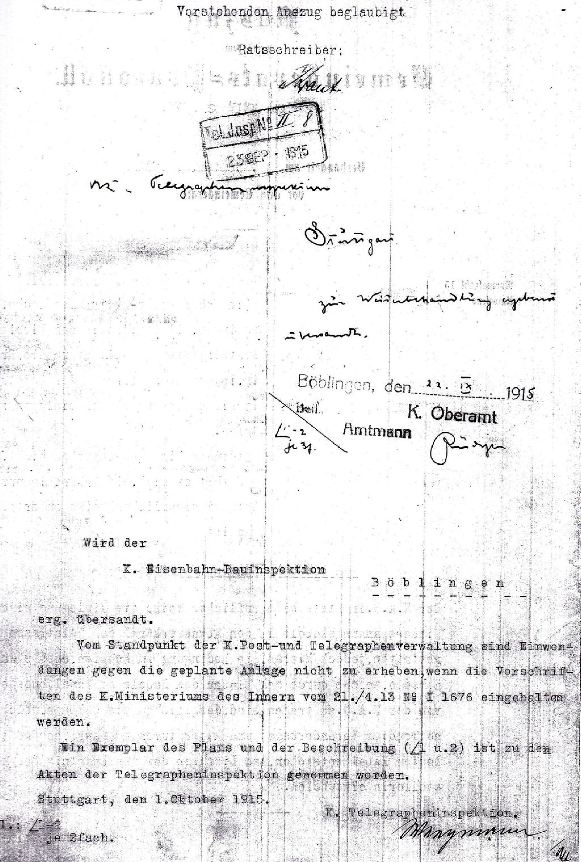 Dazu ein Brief der Stuttgarter Garnisons-Verwaltung an die Bauleitung des Flugplatzes Böblingen (Quelle Hauptstaatsarchiv Stuttgart) : Stuttgart, den 20.März 1916