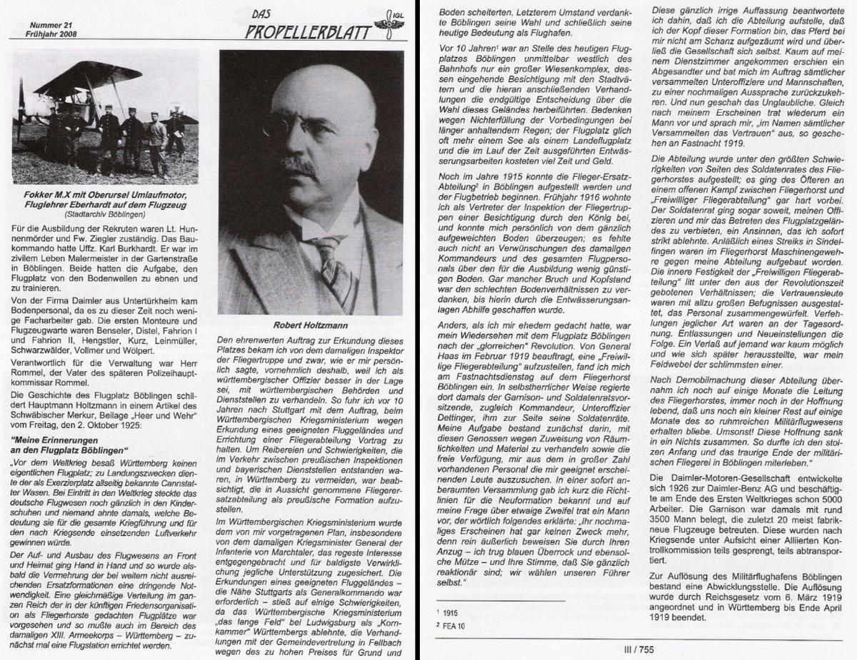 Obige Pressebericht wurde in einer Abhandlung im Propellerblatt 2008 veröffentlicht