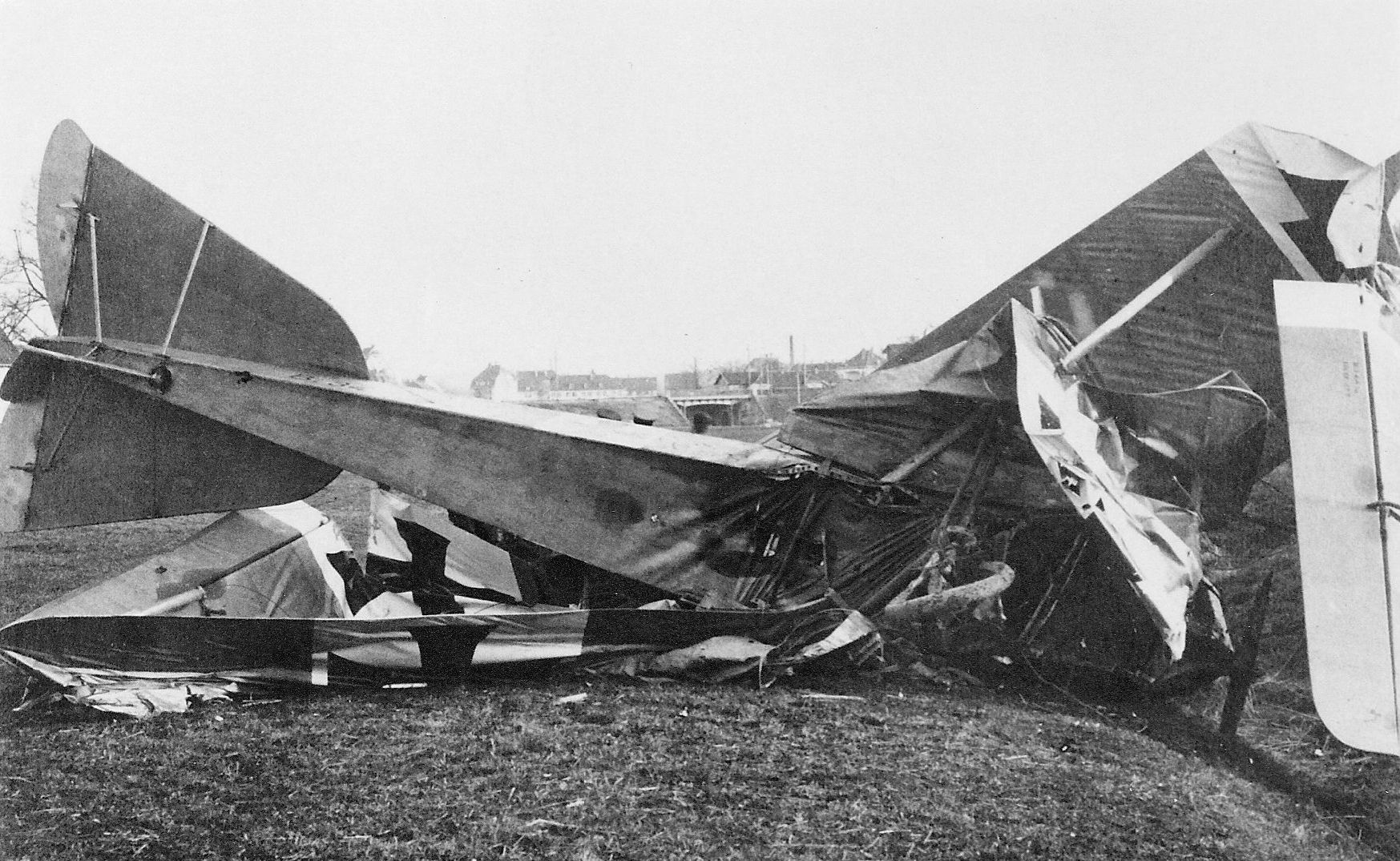 1918-05-04 Die Besatzung Fsch Gefr. Wilhem Christian Krebs *23.11.1897 in Tübingen (Bayern), und B Lt. Schulz stürzen mit Albatros C.III (LVG) C.5005/17 um 15.47 Uhr durch überziehen in einer Linkskurve am Flugplatz ab. Krebs stirbt dabei, Schulz wird verletzt.