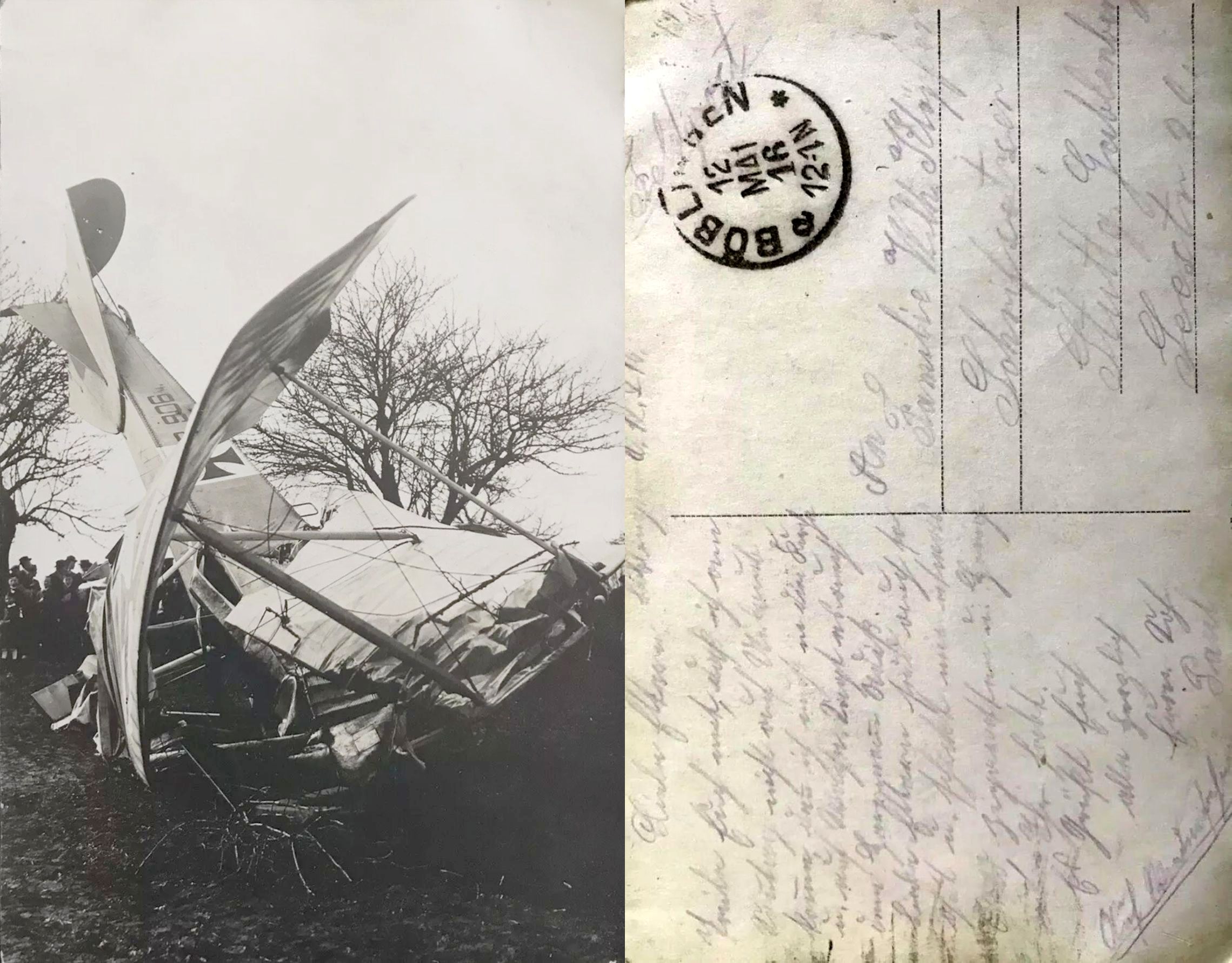 1918-03-10 Fsch Gefr. Johann Schulz *19.12.1895 in Elpersheim (Württ), kam mit seiner Aviatik C.I (Han) 3371/16 um 13.58 Uhr 3 km von Böblingen ins Trudeln und wurde beim Absturz getötet.