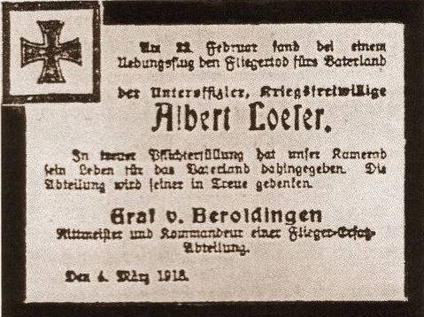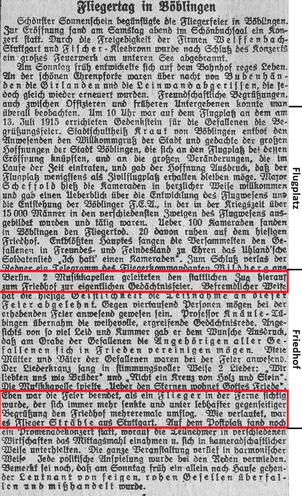 Beim Fliegertag am 01.Oktober 1921 wurde den Opfern gedacht und auch der 1916 (nicht 1915 !) errichtete Gedenkstein auf dem Militärflugplatz erwähnt.