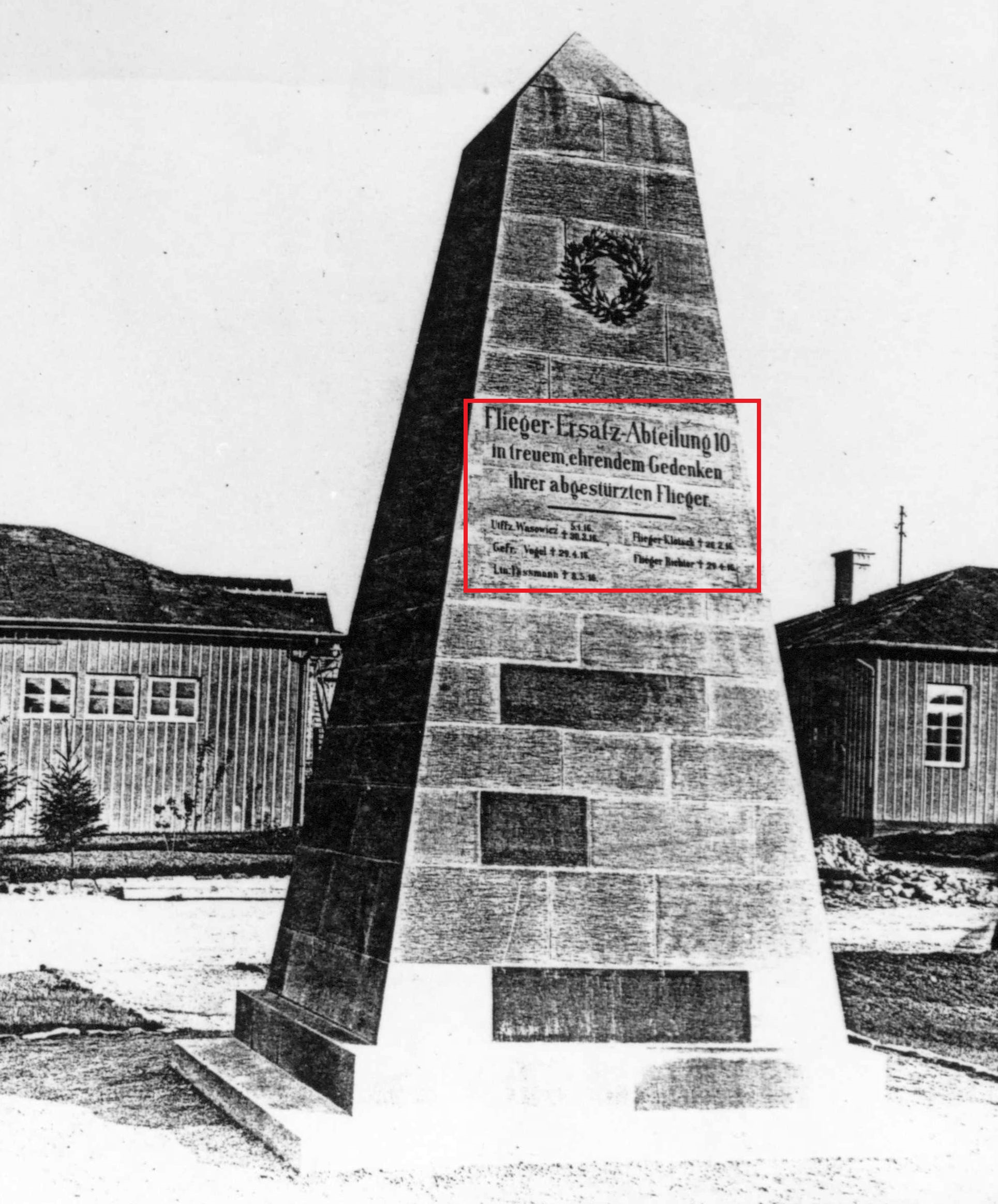 Für die ersten Absturz-Opfer wurde schon am 13.Juli 1916 ein Gedenkstein vor dem Offizierskasino aufgestellt.