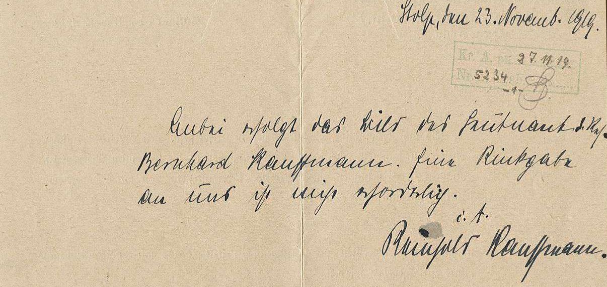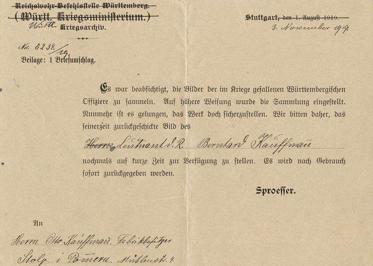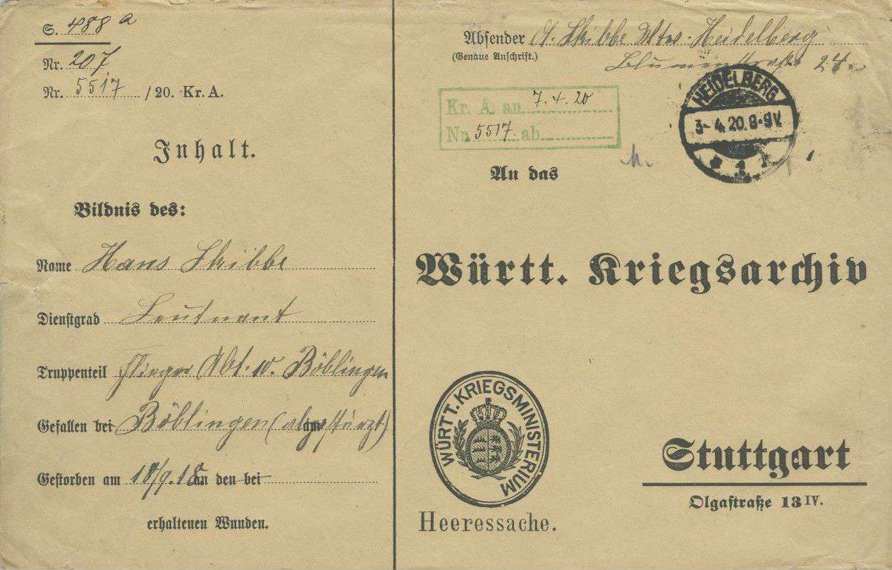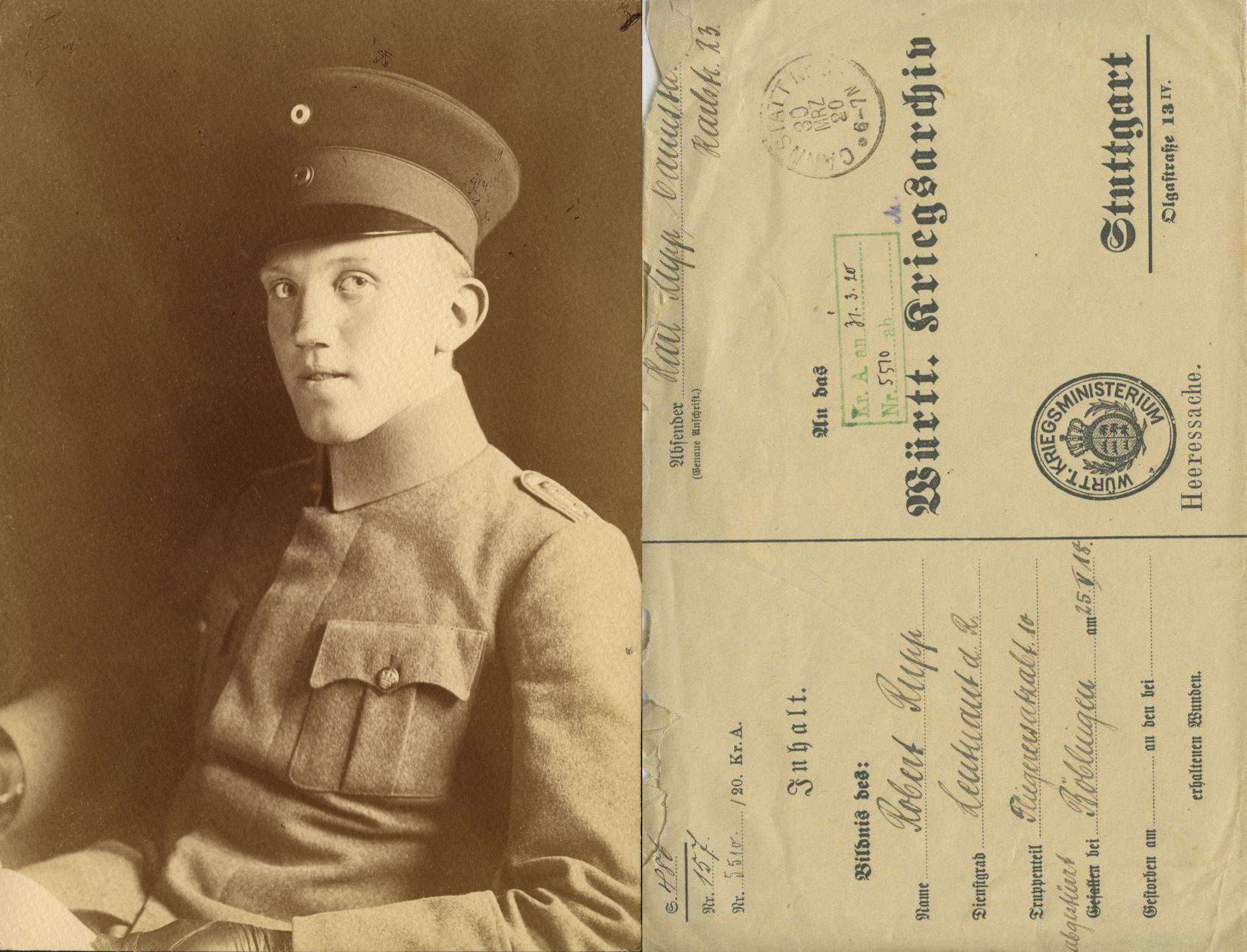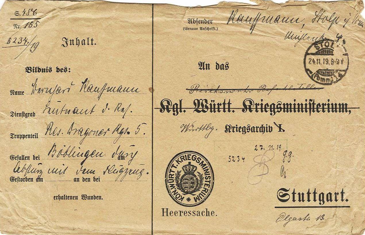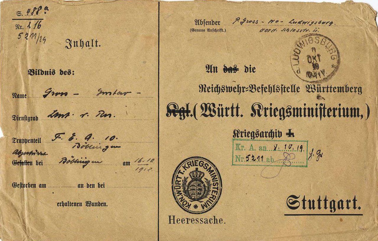 1918-11-29 BP Lstm. Leonhard Hummel 3. Kompanie *11.11.1890 in Langenau, starb in Stuttgart.