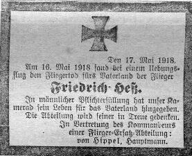 1917-06-01 Flg. Karl Nöding *04.03.1899 in Gersfeld (Hessen-Kassel), verstarb aufgrund eines Flugunfalls in Esslingen.