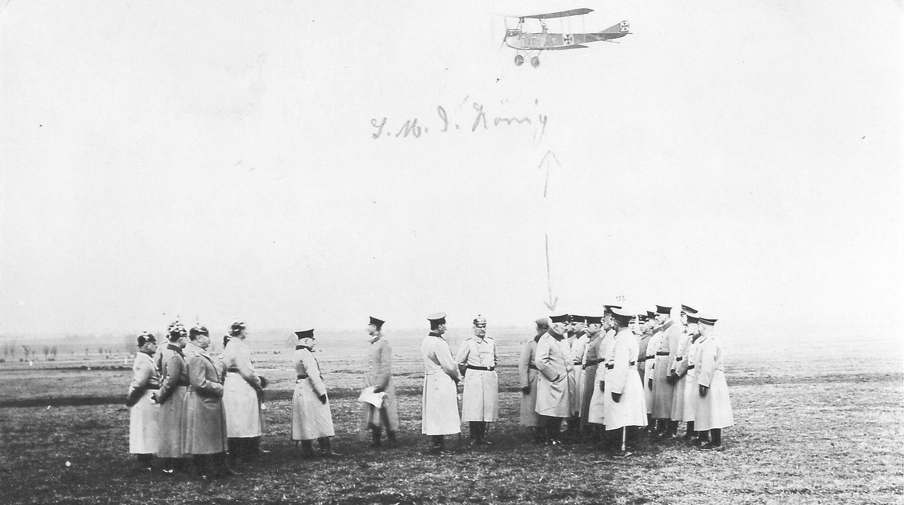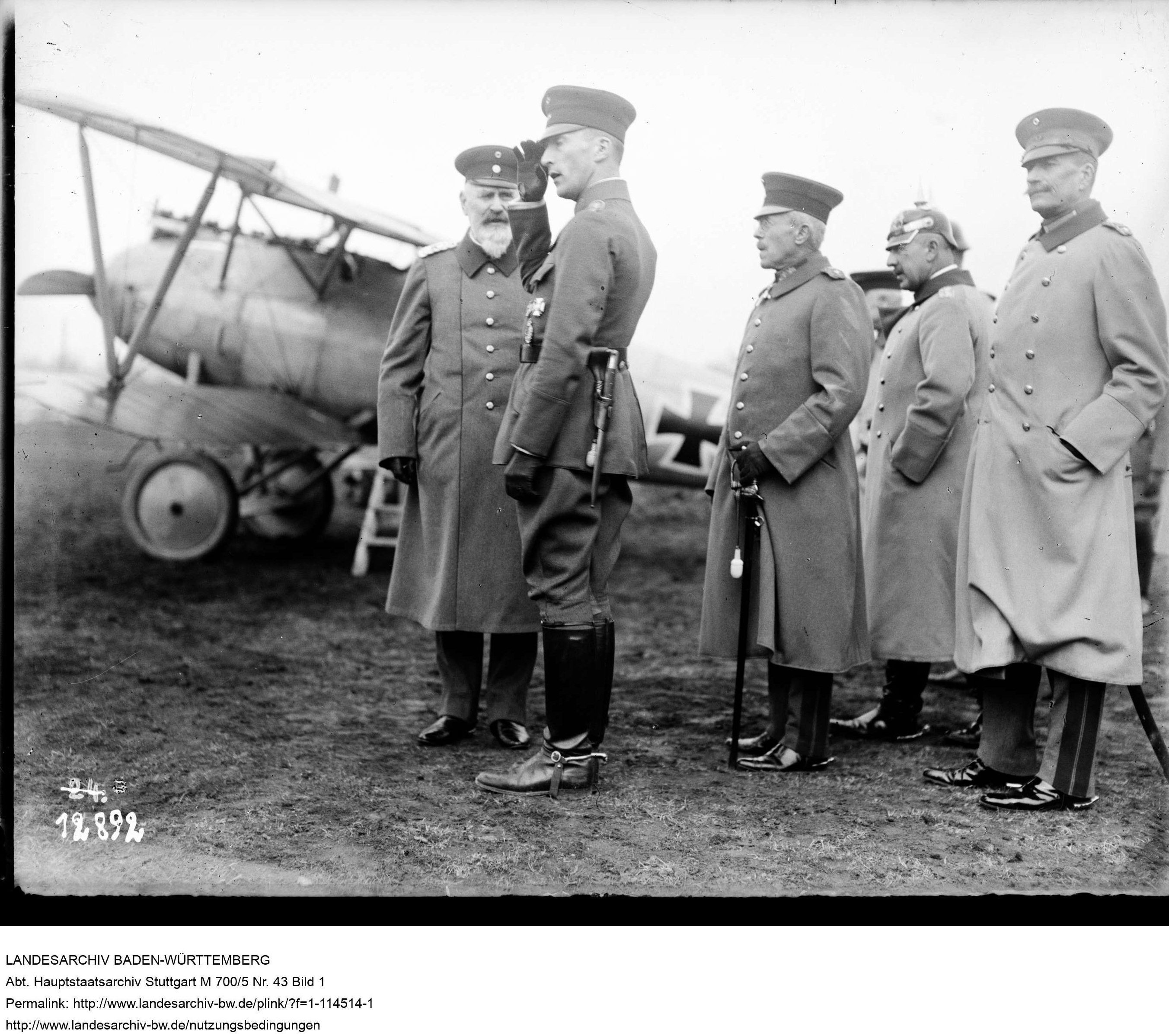 Am 06. März 1918 besuchte der König von Sachsen das württembergische Königspaar. Um 9.58 Uhr traf der König mit dem Zug auf dem Bahnhof Stuttgart ein, wo er persönlich von Wilhelm II., König von Württemberg, persönlich abgeholt wurde. In seinem Gefolge waren u.a. Generaladjudant v. Tettenborn, Flügeladjudant Oberst Baron O’Byrn und Flügeladjudant Major Gontard. Am frühen Nachmittag wurde die Fliegerstation in Böblingen (Fliegerersatzabteilung 10) besucht. Um17.10 Uhr reiste der König von Sachsen wieder vom Stuttgarter Bahnhof ab. Vom Böblinger Besuch ist außer einer Fotoserie im Hauptstaatsarchiv Stuttgart nichts bekannt. Auf den Fotos konnten bisher nur der Kommandant der Fliegerersatzabteilung 10 (Fea 10) Egon Graf von Beroldingen, Wilhelm II. König von Württemberg und der König August von Sachsen eindeutig identifiziert werden. Anwesend waren aber auch u.a. Prinz Max von Baden, Prinz Eitel Friedrich und Kriegsminister von Marchtaler. Im Gefolge des sächsischen Königs wurde eine schwarze Armbinde getragen. Grund war der Tod von Großherzog von Mecklenburg-Strelitz Adolf Friedrich VI am 24. Februar 1918. Daraufhin wurde eine 14tätige Staatstrauer angeordnet.