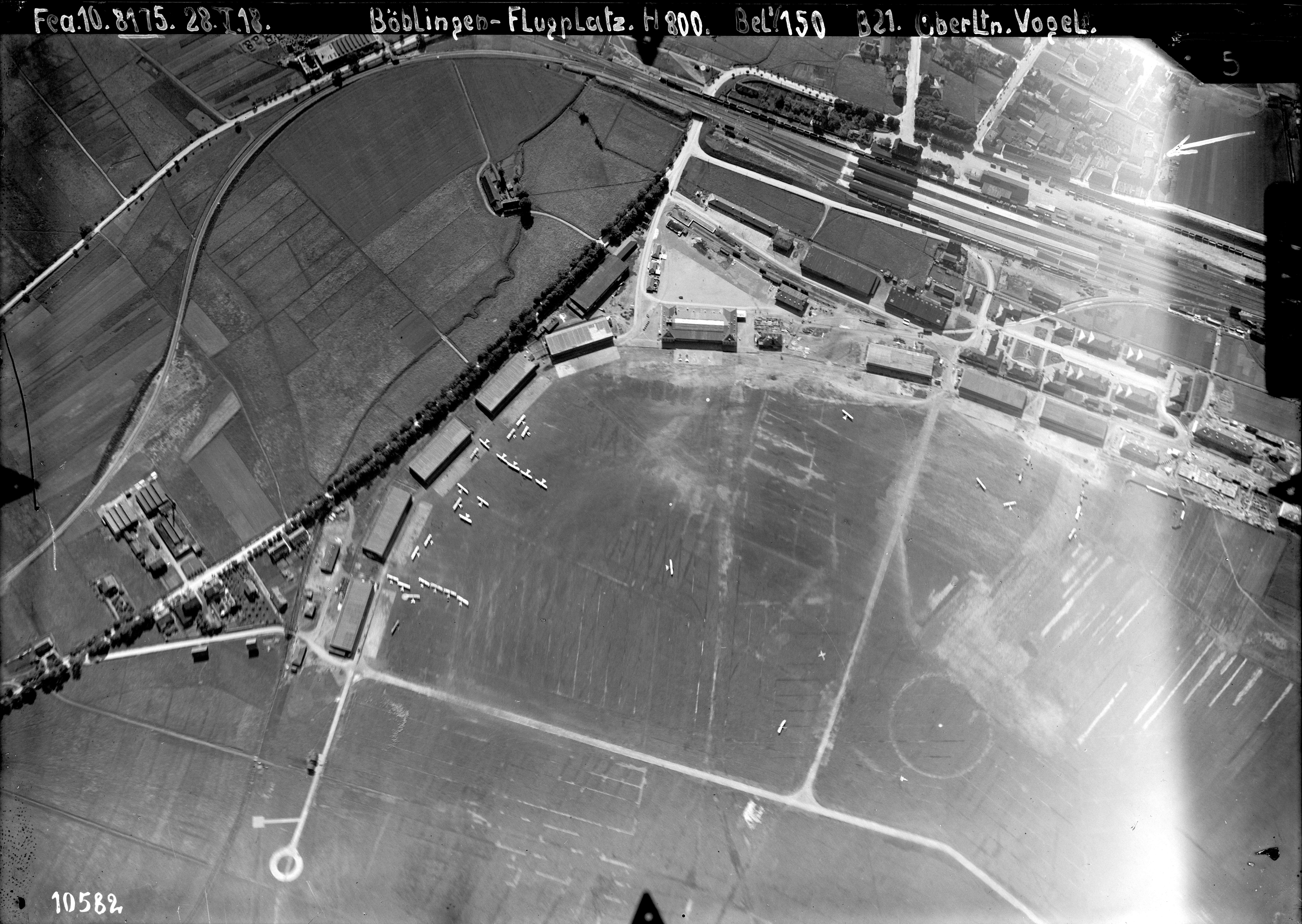 1918-06-15 Böblingen Elbenplatz (Quelle)1918-07-01 Böblingen – Mitte links Bahnhof – Bahnlinie, darüber Rohrmühle, Abzweigung Bahnlinie nach Sindelfingen (Quelle)1918-07-02 Böblingen – vorn links Bahnhofstrasse mit Postamt, Bahnhof mit Güterabfertigung (Quelle)1918-07-12 Böblingen – Zentrum – links oben Rathaus, Stadtkirche, Schloss, Postplatz – Bildmitte von links Plattenbühl, Pestalozzischule, Steigerturm-Feuerwehr (Quelle)1918-07-12 von links oben Flugplatz, Galgenberg – Mitte Zentrum, von links unten Zuckerfabrik, Unterer + Oberer See (Quelle)1918-07-22 Blick vom Flugplatz auf Böblingen, von links Bonifatiuskirche, Schloss, Stadtkirche, Rathaus. Fahrender Zug (Quelle)1918-07-22 Flugplatz – oben Sindelfingen mit Daimler (Quelle)1918-07-28 Flugplatz, oben Rohrmühle und Bahnhof (Quelle)1918-07-29 Böblingen – Sanatorium (Quelle)1918-08-04 Böblingen – oben links Brauerei Zahn, darunter Bonifatiuskirche, rechts Schlossberg mit Schloss, Stadtkirche, Rathaus, rechts unten Elbenplatz, Unterer See (Quelle)1918-08-06 Auf dem Gelände der Böblinger Zuckerfabrik (Bildmitte) Flugzeuge. Die Zuckerfabrik diente als Schulungszentrum der Fea10 (Quelle)1918-08-06 Böblingen Schönbuchbahn Haltestelle Schönaicher First (jetzt Sportgelände Zimmerschlag)(Quelle) 1918-08-20 Böblingen – Bezirkskrankenhaus-im WK I. Reserve-Lazarett (Quelle)1918-08-21 Flugplatz – die Gebäude sind fertig – 30.05.1918 Rohbau, links oben Stadt – Mitte Bahnhof(Quelle)1918-08-21 Flugplatz Die fertigen Gebäude sind gut zu erkennen.(Quelle)1918-09-04 links oben Flugplatz, unten rechts Stadt – getrennt von der Bahnlinie nach Stuttgart (Gäubahn) (Quelle)1918-09-14 Böblingen – Postplatz, Schlossberg mit Schloss, Stadtkirche, Rathaus, unten Elbenplatz, Unterer See (Quelle)1918-09-18 Böblingen – Alter Friedhof mit Aussegnungshalle, wurde als Krematorium angelegt, aber nie betrieben. (Quelle)1918-10-17 Böblingen Schönbuchbahn Südbahnhof (Quelle)1918-10-23 Böblingen – Bildmitte Zuckerfabrik mit Unterer See (Quelle) ohne DatumBlick vom Flugplatz auf Böblingen – von links Bonifatiuskirche + Mitte Schloss + Stadtkirche + Rathaus(Quelle)ohne Datum Blick vom Flugplatz auf Böblingen – Galgenberg links unten Flugzeug(Quelle)ohne Datum Blick vom Flugplatz auf Böblingen – Bahnhof(Quelle)ohne Datum Blick vom Flugplatz auf Böblingen – im Winter + Stellwerk(Quelle)ohne Datum Böblingen zu dieser Zeit ein beschauliches Städtchen – am oberen rechten Bildrand der Flugplatz (Quelle)