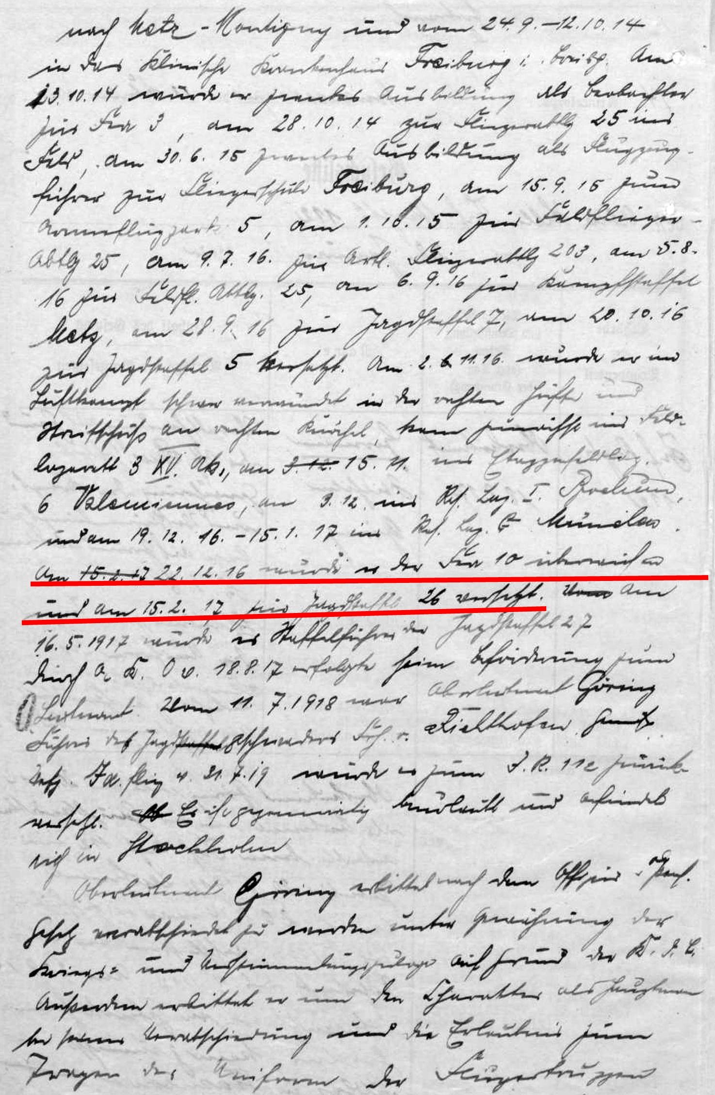 In seiner Personalakte im Generallandesarchiv Karlsruhe wird die Versetzung zur Fea 10 nach Böblingen zum 22.12.1916 vermerkt.