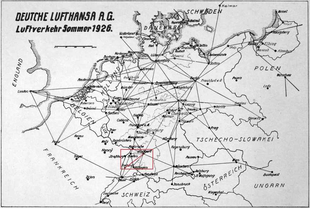 „Ein schwacher Trost war es, dass 1929/1930 der Flugbetrieb auf der Linie 26 Freiburg – Stuttgart mit an der Spitze im Reichsgebiet lag und während 8 Monate ununterbrochen beflogen wurde.“